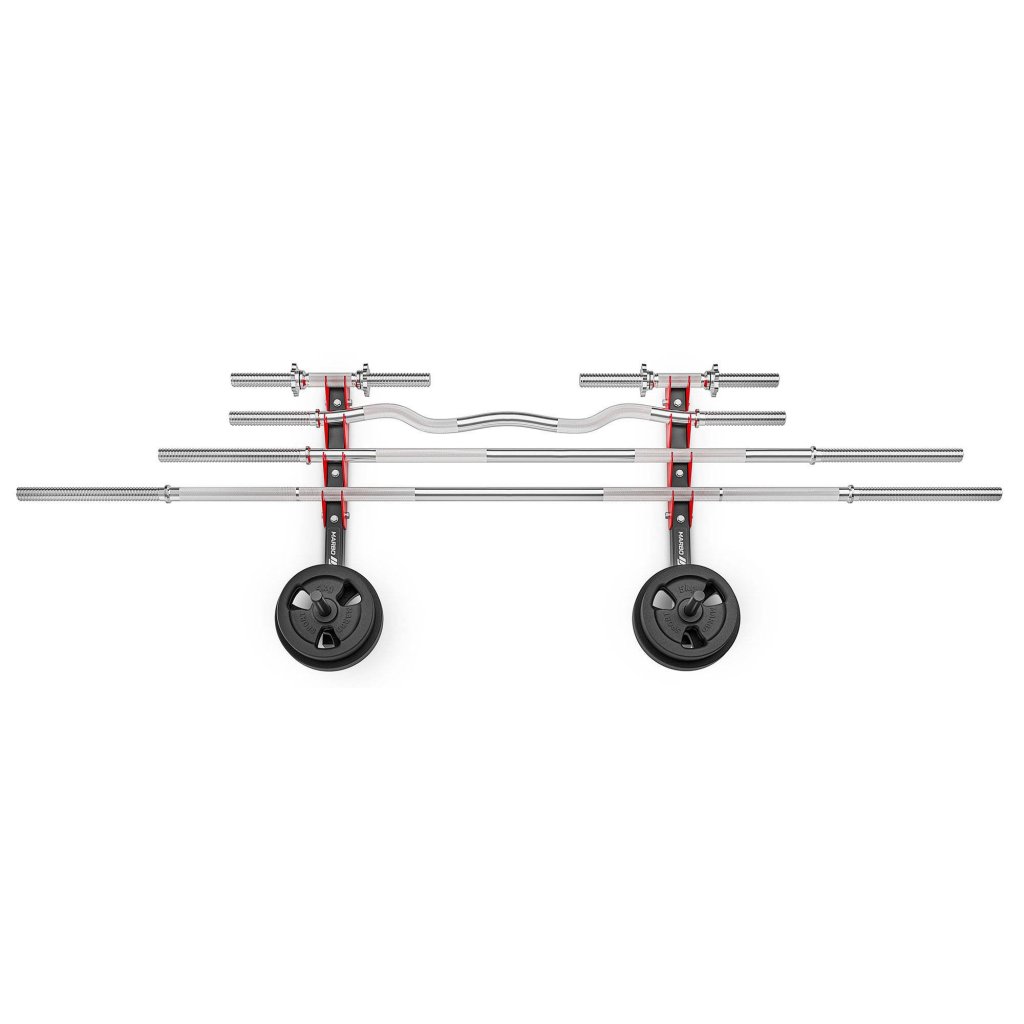 Držiak na osi a závažia MARBO MH-S208 je ideálne riešenie pre každého, kto chce mať vo svojej domácej posilňovni poriadok, bezpečie a maximálne využitie priestoru. Tento kvalitný nástenný stojan kombinuje odolnosť, stabilitu a praktickosť, vďaka čomu budete mať všetko pod kontrolou – tyče aj závažia budú vždy na dosah, bez zbytočného zaberania miesta.