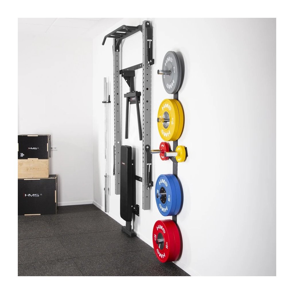 Poslednou časťou súpravy je nástenný držiak, na ktorý možno zavesiť dve osy. Nakladacie osy sú nevyhnutným príslušenstvom na silový tréning na posilnenie svalov celého tela. Držiak umožňuje udržiavať osy v poriadku, takže nezaberajú miesto na podlahe.