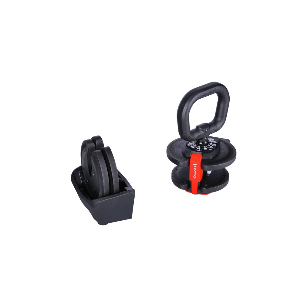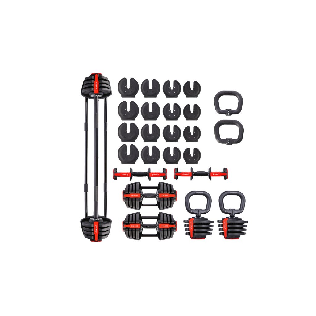 HMS SGR18 PRO SET 3v1 je sada variabilných - nastaviteľných činiek s možnosťou zostavenia ako jednoručná činka, obojručná činka alebo kettlebell.