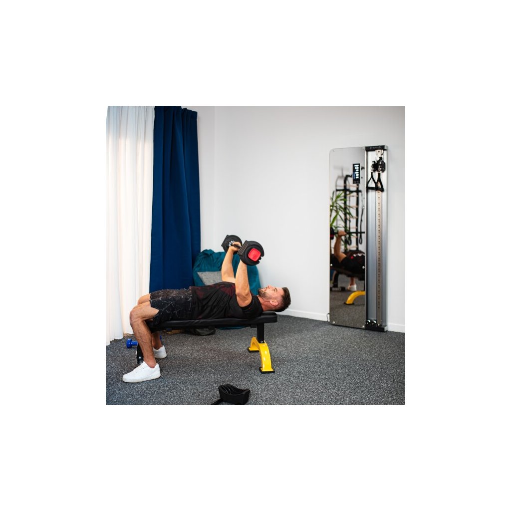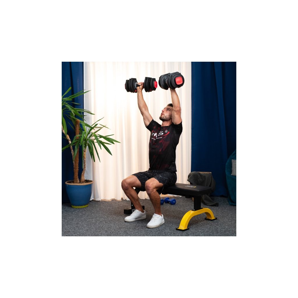 S HMS SGR18 zabudnite na ťažké nakladacie činky a kotúče, ktoré zaberajú veľa miesta, na neustálu výmenu závaží na osi a nekonečné uťahovanie poistných matíc. S nastaviteľnými činkami SGR18 máte všetko, čo potrebujete na efektívny silový tréning. Môžete s nimi vykonávať rôzne cviky a nastaviť záťaž podľa svojho tréningového plánu. Zariadenie sa dá ľahko zostaviť a uskladniť, takže nezaberie veľa miesta.