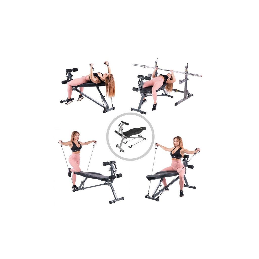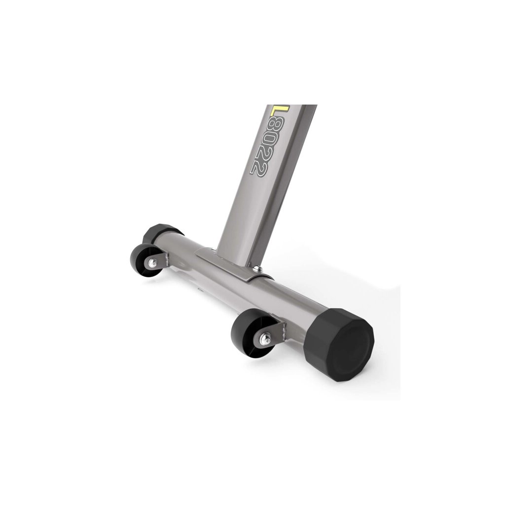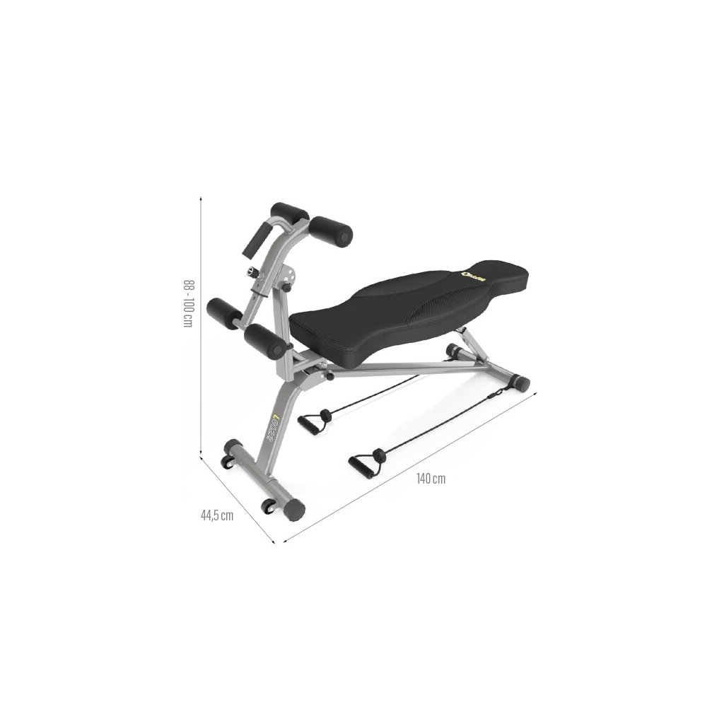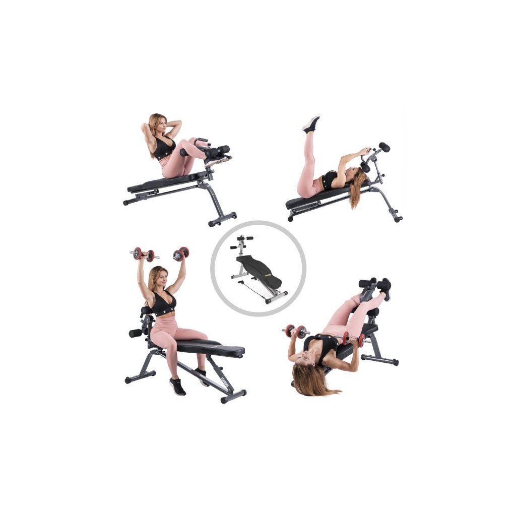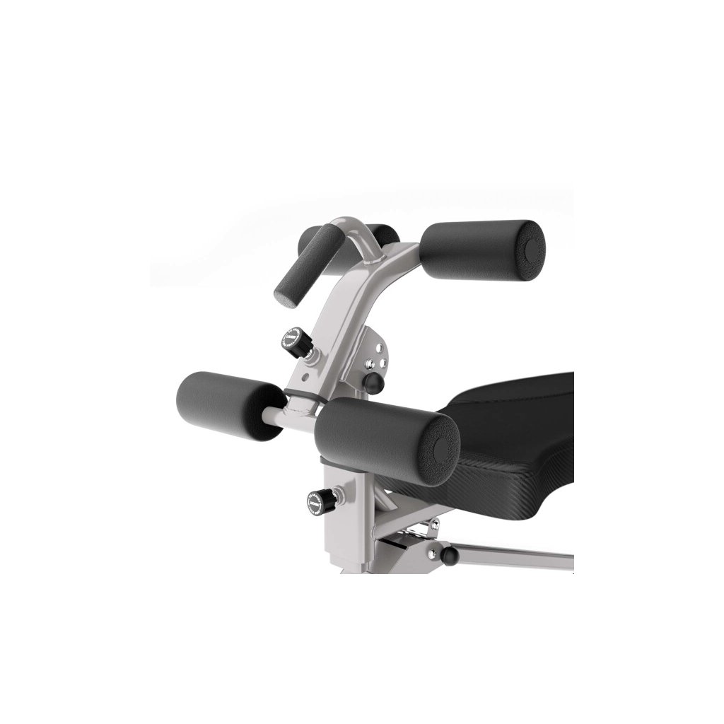 HMS Premium L8022 je rovná, nastaviteľná lavička so zarážkami a expandérmi, ktorá nájde ideálne využitie pri tréningu s činkami. Chrbtová opierka je nastaviteľná do 5 polôh (1 rovná a 4 s negatívnym sklonom). Operadlo v horizontálnej polohe je ideálne na vykonávanie väčšiny cvikov s činkami, ak je operadlo nastavené do záporného uhla, potom získame šikmú lavicu na posilňovanie brucha, na tento účel je L8022 vybavená nastaviteľným, výsuvným rámom so zarážkami, ktorý je nastaviteľný v 3 polohách a 4 uhloch, zarážka na nohy je nastaviteľná do 3 vzdialeností. Rám je teda hlavnou výhodou lavice a umožňuje presné nastavenie pre každú postavu, takže tréning sed-ľahov je bezpečný a pohodlný. Chrbtová opierka je vyrobená z hrubej dosky potiahnutej vysokou vrstvou peny pre maximálne pohodlie počas tréningu. Ergonomické polstrovanie je vyrobené zo syntetickej kože uhlíkového vzhľadu, je odolné voči potu a tiež zabraňuje "pošmyknutiu" počas tréningu. Penové valčeky sú vyrobené z materiálu EVA pre vysoký komfort a odolnosť. Lavica sa dodáva s 2 expandérmi, ktoré sú skvelé na základný tréning. Na jednoduché premiestňovanie lavice je jeden stabilizátor vybavený transportnými kolieskami.