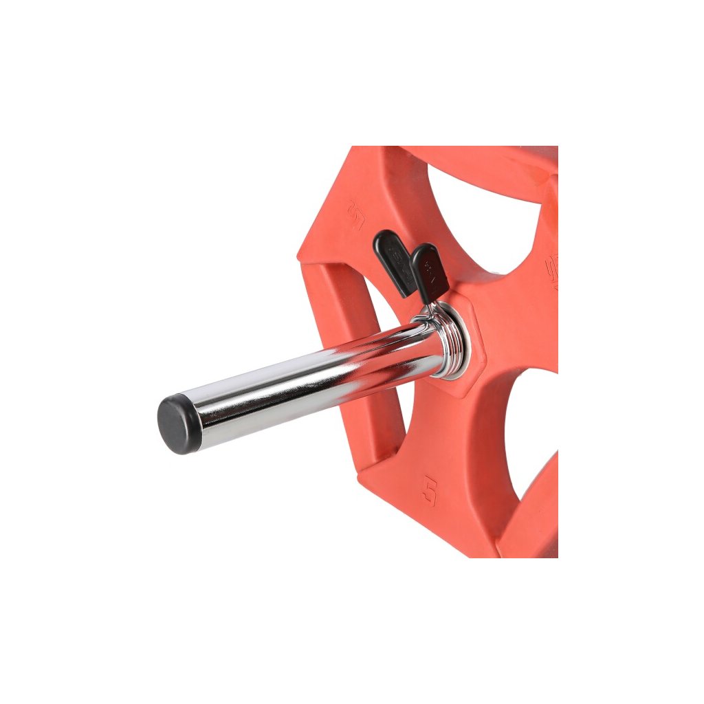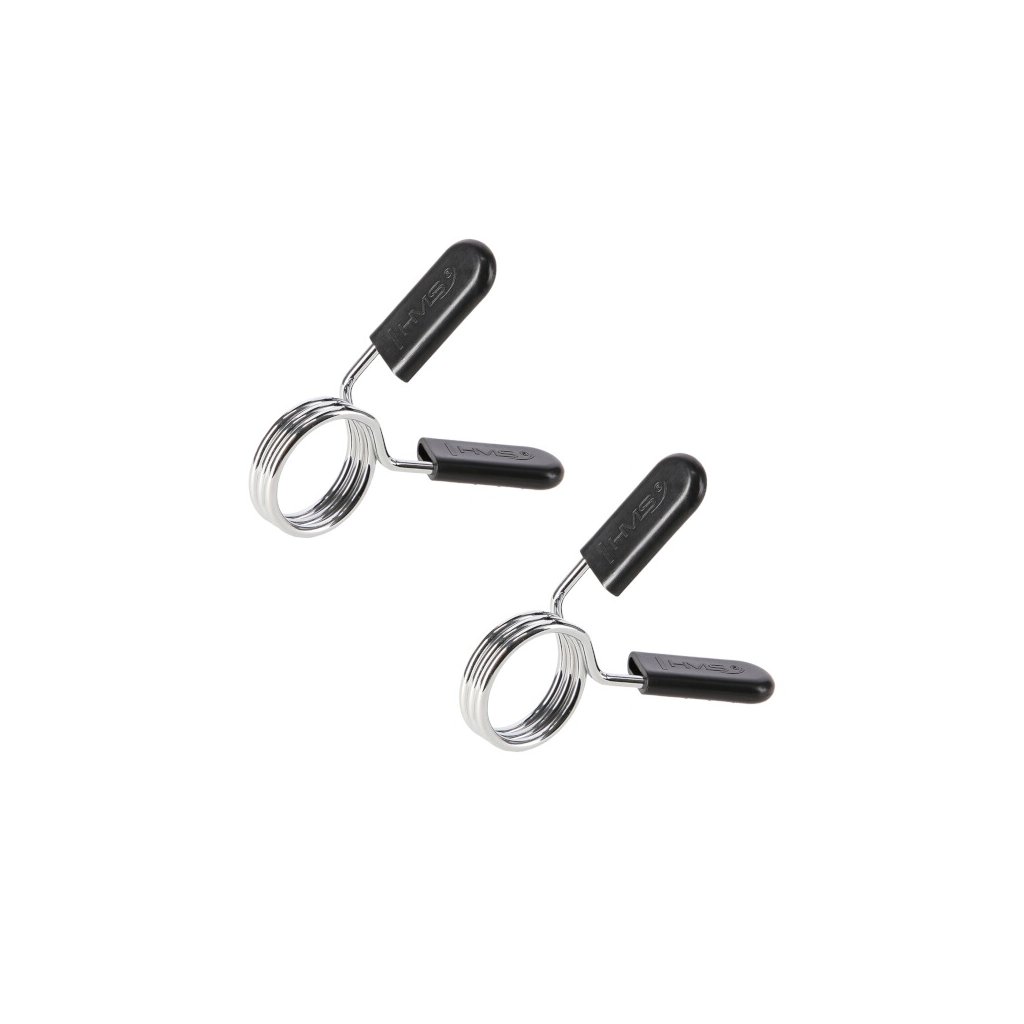 Klasické, pružinové svorky HMS ZGS25 sú určené na rýchle a účinné upevnenie závažia na osu. Svorky sú vyrobené z 3 milimetre hrubého oceľového drôtu. 3 závity poskytujú dostatočnú upínaciu silu aj pri dynamickom tréningu. " Krídelká" sú naklonené na jednu stranu, takže svorka môže byť úplne pripevnená ku kotúču, čo má za následok lepšie zaistenie ako pri podobných svorkách, ktoré majú "krídla" v osi svorky. Plastové krytky zvyšujú komfort pri manipulácii so svorkami. Balenie obsahuje 2 kusy svoriek.