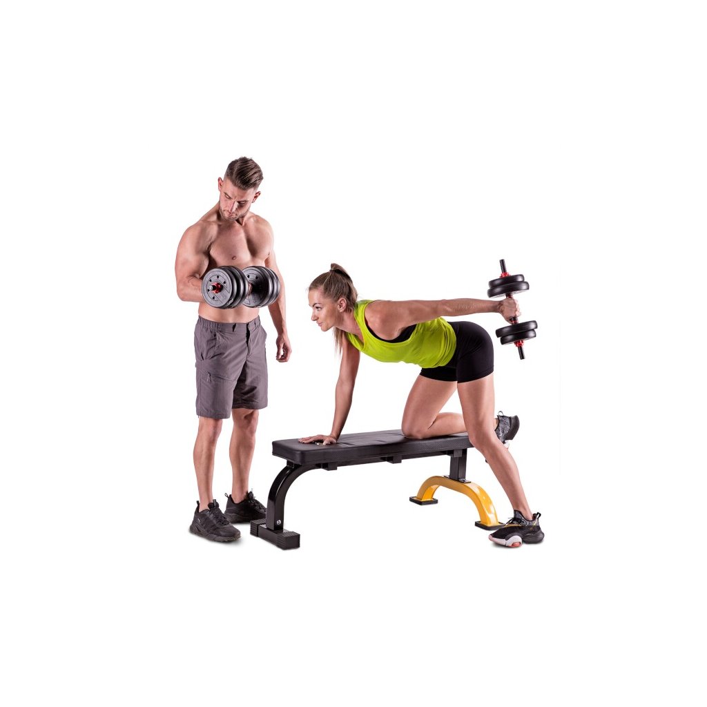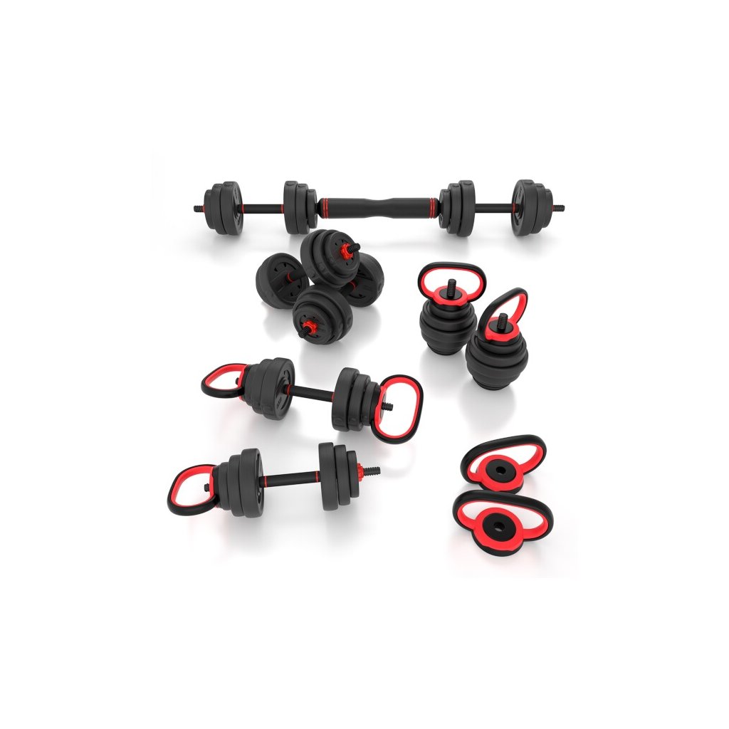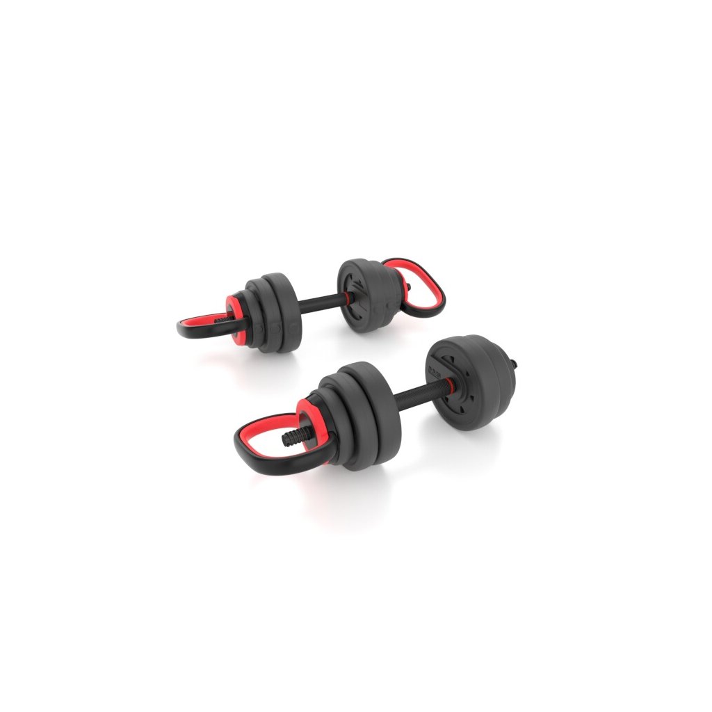 HMS SGX120 Pro je inovatívne riešenie 6v1 pre každú domácu posilňovňu. Základný stavebný prvok tvoria 2 nakladacie jednoručné činky a sada kotúčov. Vďaka širokej škále príslušenstva možno z týchto základných činiek zostaviť obojručnú činku, dva kettlebelly, činku s tromi držadlami, činku s bočným držadlom a stojan na kliky. Činky sú vyrobené z vysokokvalitného a konzistentného kompozitu, ktorý je potiahnutý tvrdým plastom, aby sa zabezpečila ich trvanlivosť a odolnosť voči poškodeniu. Všetky rukoväte a držadlá sú vybavené protišmykovými materiálmi na zabezpečenie pevného úchopu. Spojovací diel je pokrytý ergonomicky tvarovanou penou pre maximálne pohodlie počas tréningu s činkou na chrbte. Nakladacie tyče majú vrúbkovanú rukoväť pre bezpečné uchopenie a závažia sú upevnené pomocou skrutkovacích objímok v tvare hviezdy. Obojručná činka vzniká zaskrutkovaním nakladacích hriadeľov do spojovacieho dielu, výsledná os je dlhá 98 cm a úchopy sú od seba vzdialené 40 až 67 cm. Kettlebell sa skladá z 21 centimetrov dlhého nakladacieho tŕňa, na ktorom sú naskladané kotúče požadovanej hmotnosti, ktoré sú upevnené rukoväti. Ak nahradíme hviezdicové objímky na jednoručných činkách rukoväťami, získame činku s tromi rukoväťami, ktorá je ideálna na tréning, keď je potrebné, aby obe ruky pracovali symetricky, napríklad pri tréningu ramien. Ak nahradíme úchopom iba jednu hviezdicovú objímku, získame činku, ktorú možno použiť ako kettlebell. Samotné rukoväte slúžia ako podpery pre kľuky. Tréning s podperami umožňuje väčší rozsah pohybu a zefektívňuje tréning klikov. SGX je jediná súprava, ktorá vďaka nespočetným možnostiam vybaví celú vašu domácu posilňovňu. Je potrebné ho mať!