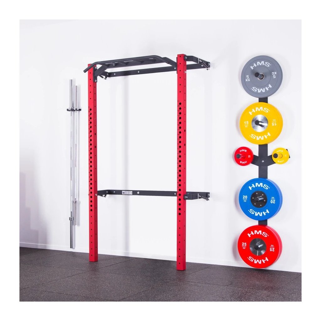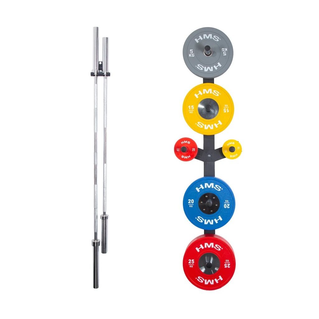 Ak hľadáte efektívny spôsob uskladnenia os a závaží, táto súprava od spoločnosti HMS je pre vás ideálnym riešením. Nástenný stojan na osy a stojan na závažia vám ušetrí veľa miesta vo vašom tréningovom priestore.