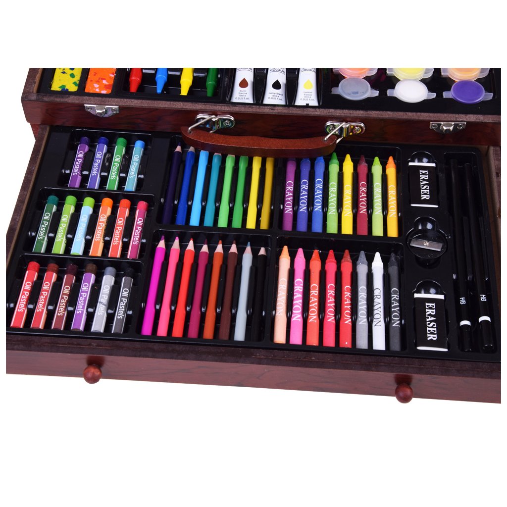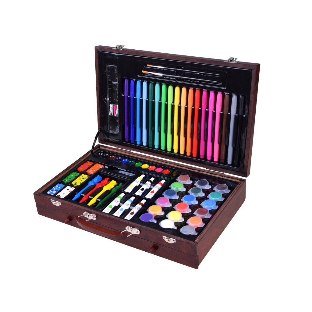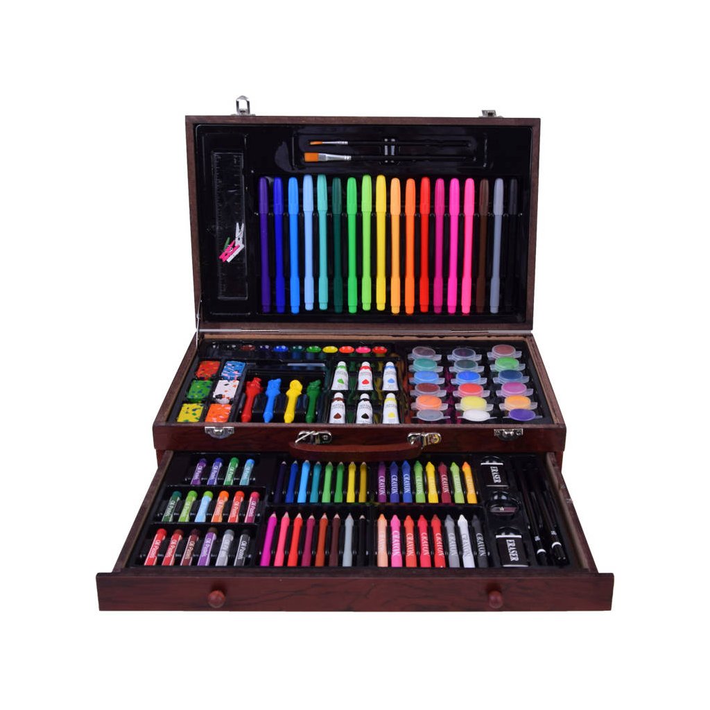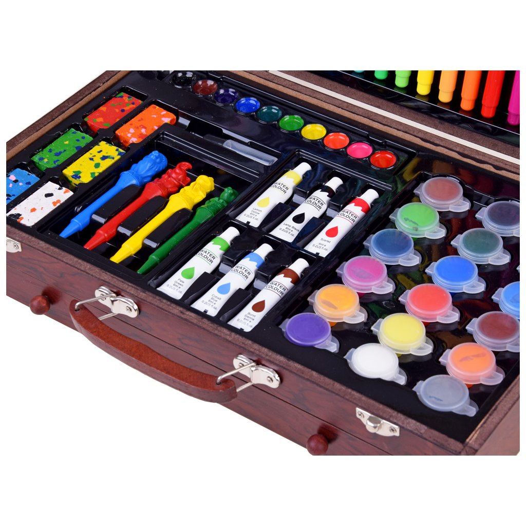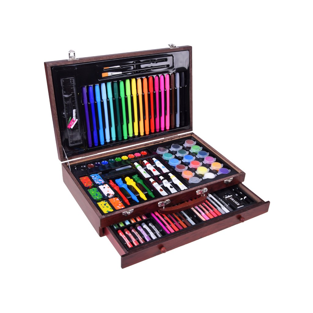 Umelecký set drevený kufor 123 dielov – výtvarné potreby AP0004