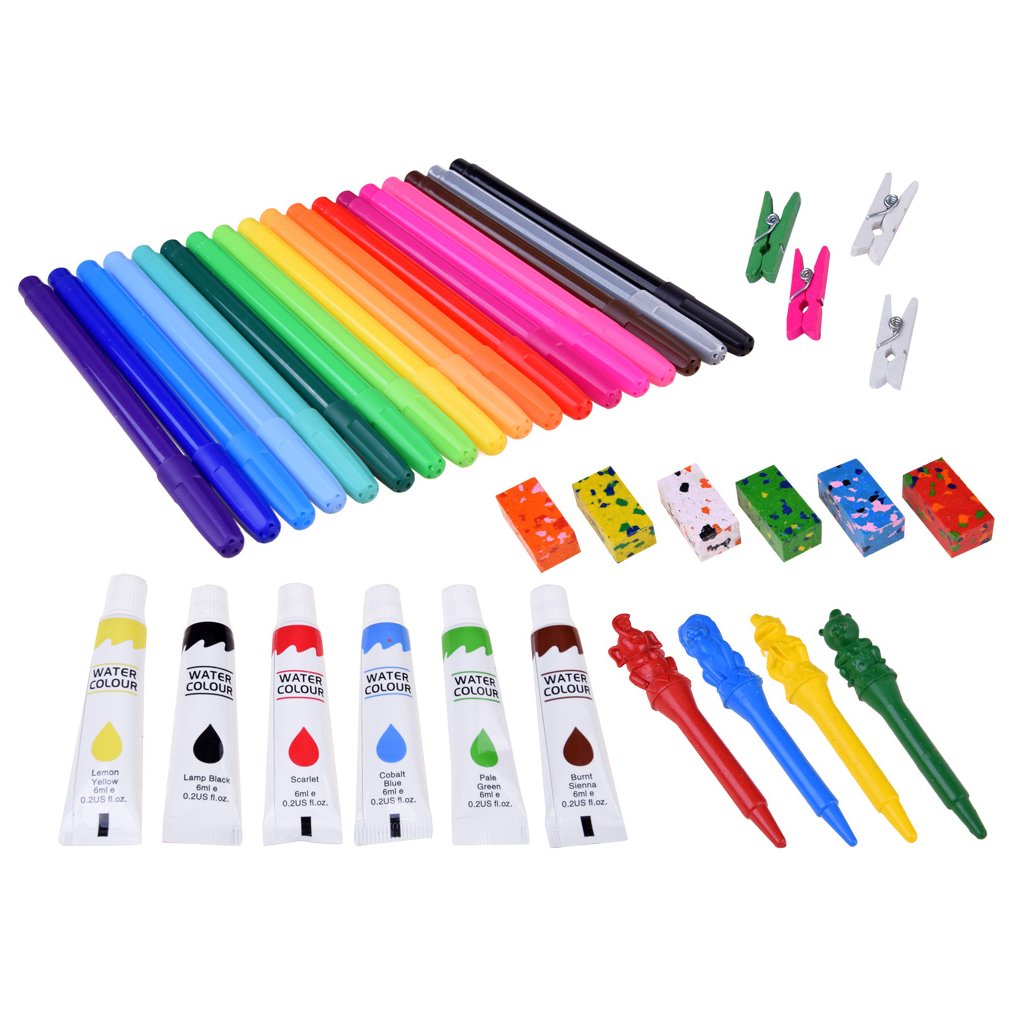 Rozvíjajte kreativitu svojho dieťaťa hravou formou s umelckým setom v drevenom kufríku! Táto rozsiahla sada 123 dielov obsahuje všetko potrebné na kreslenie, maľovanie a tvorivé experimentovanie. Každá aktivita podporuje jemnú motoriku, rozvíja predstavivosť a umožňuje deťom vyjadriť svoje emócie a sny prostredníctvom umenia.