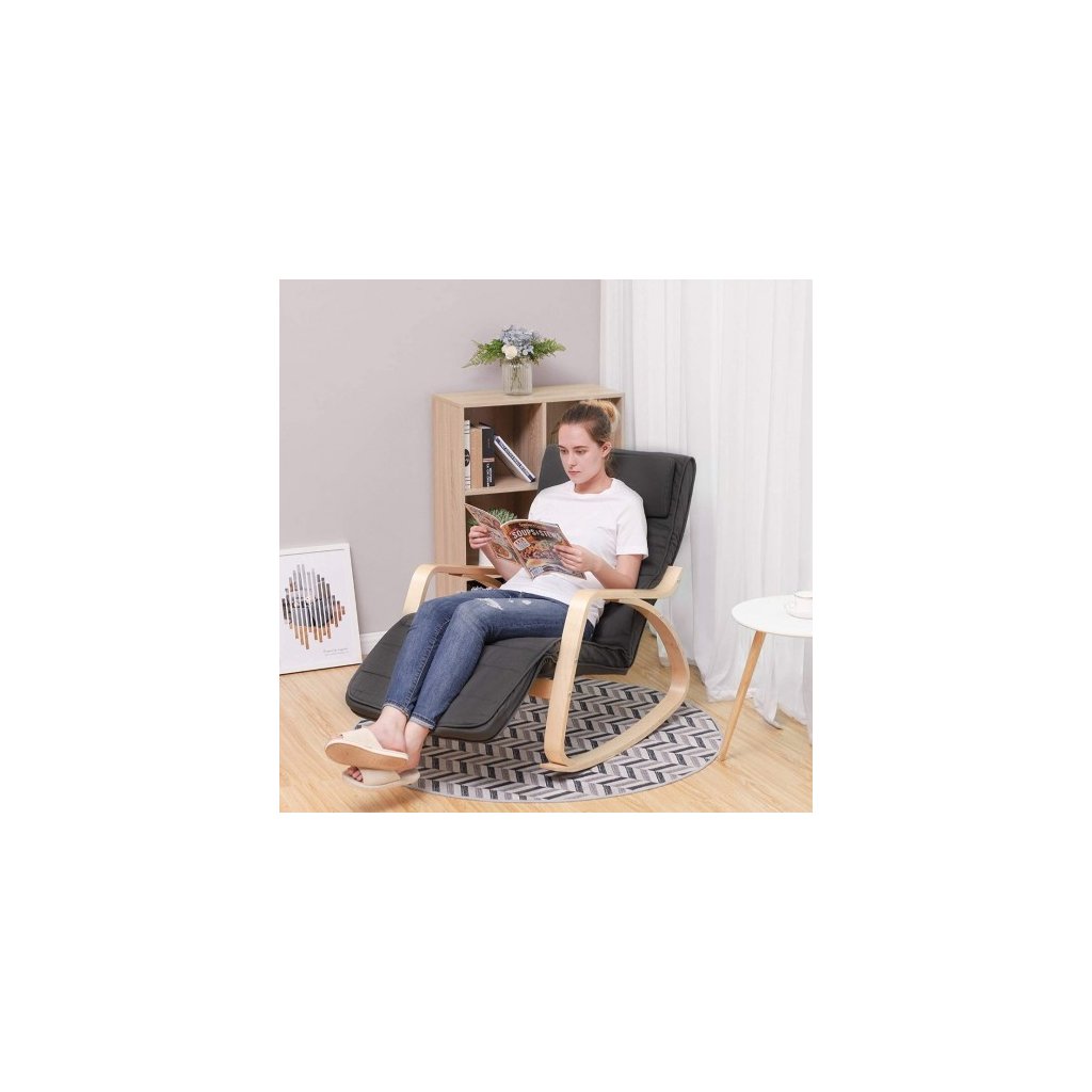 Relaxačné hojdacie kreslo značky SONGMICS s nastaviteľnou opierkou na nohy poskytuje až 5 úrovní podpory na nohy. Konštrukcia kresla je vyrobená z brezového dreva a poťah sedadla zo 100% bavlny. Čalúnenie je vyplnené penou s vysokou hustotou, je pekné a mäkké a z hojdacieho kresla urobí útulné ležadlo alebo sedadlo; zakrivený rám je ergonomicky tvarovaný a zaisťuje pohodlné hojdanie. Odnímateľný vankúš v úrovni hlavy poskytuje ochranu krčnej chrbtice. Poťah aj vankúš sa dajú ľahko odňať na pranie -poťah cez zips na zadnej strane; vankúš cez suchý zips. Kreslo má flexibilné použitie - či už vonku na záhrade, terase, balkóne alebo vo vnútri obývacej izby alebo v pracovni, ponúka skutočný pôžitok pri čítaní kníh, sledovaní televízie, počúvaní hudby, maznaní a oveľa viac.