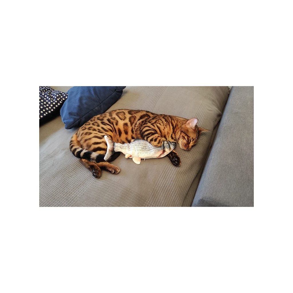 Hračka je mäkký plyš v tvare rybky vyrobený v 3D. Má veľmi skutočný vzhľad a rozmery pripomína skutočnú rybu a ako viete, mačky majú radi ryby. Materiál, z ktorého je hračka vyrobená, sa ľahko udržuje v čistote, pretože ju možno prať v práčke alebo ručne na 30 stupňov. Jediné, čo musíte urobiť, je odstrániť mechanizmus z vnútra ryby. Počas tejto doby sa dá dobiť, aby mačka mala hračku vždy pripravenú na hranie.
