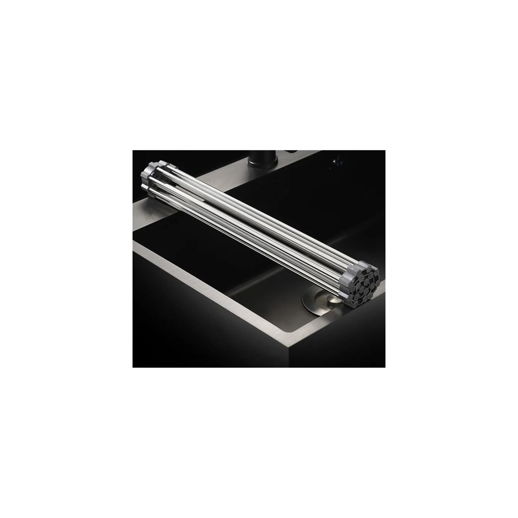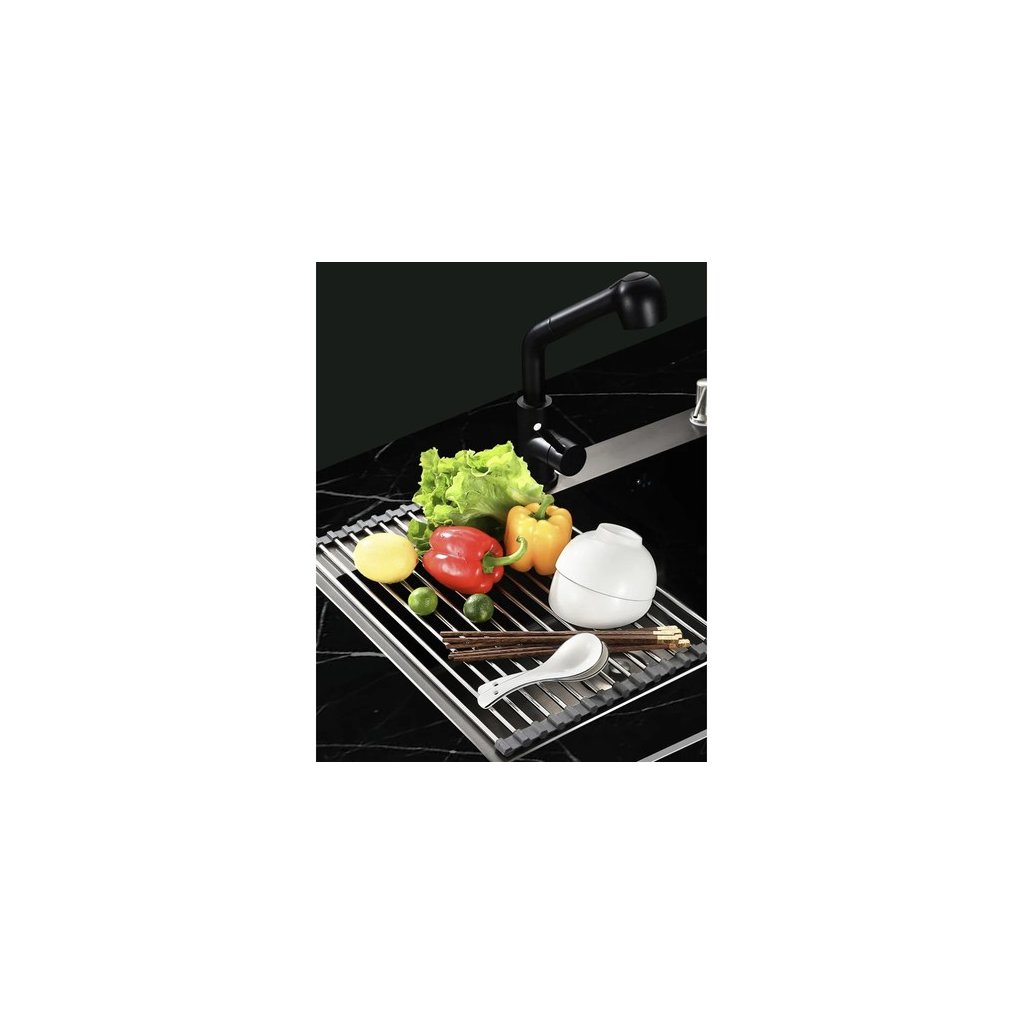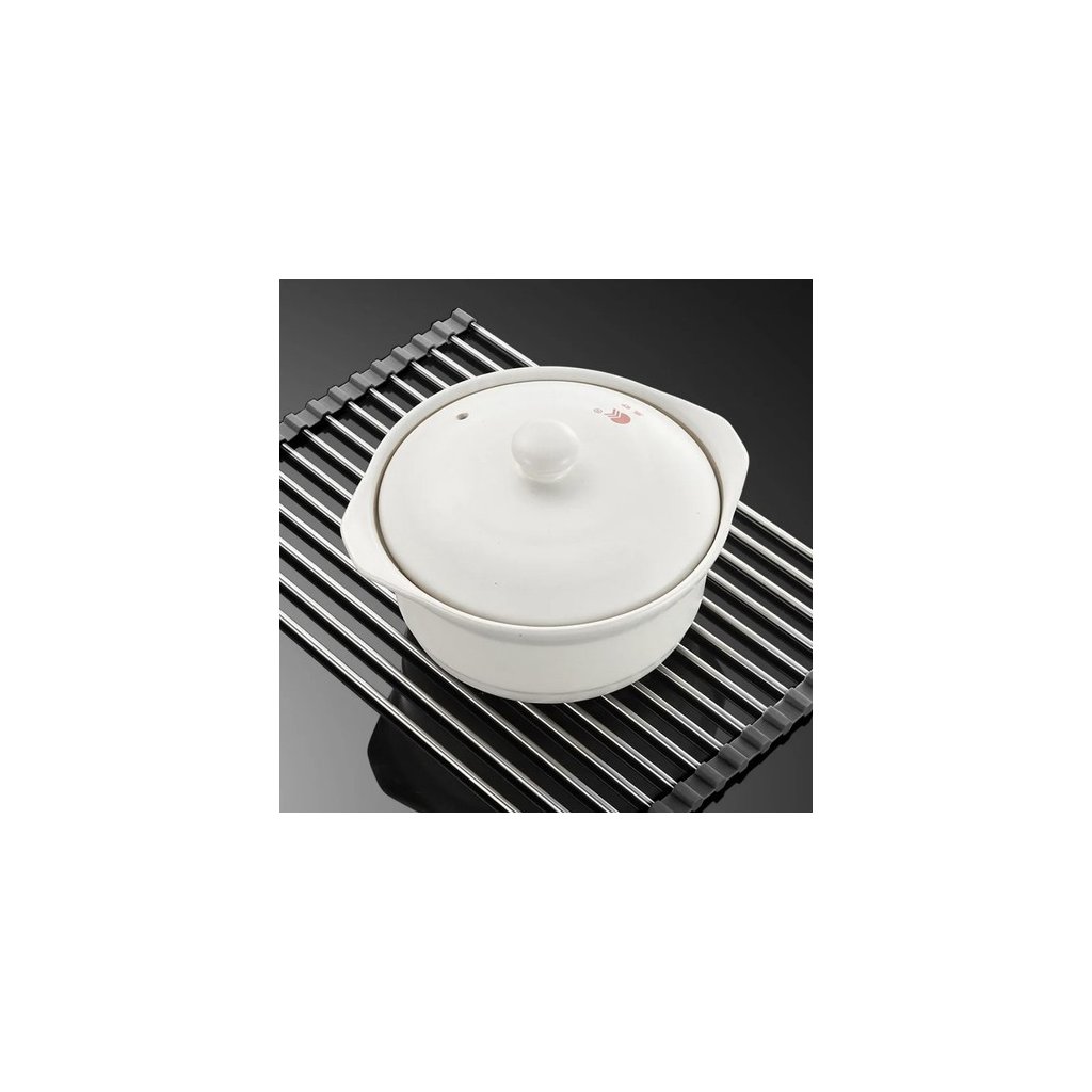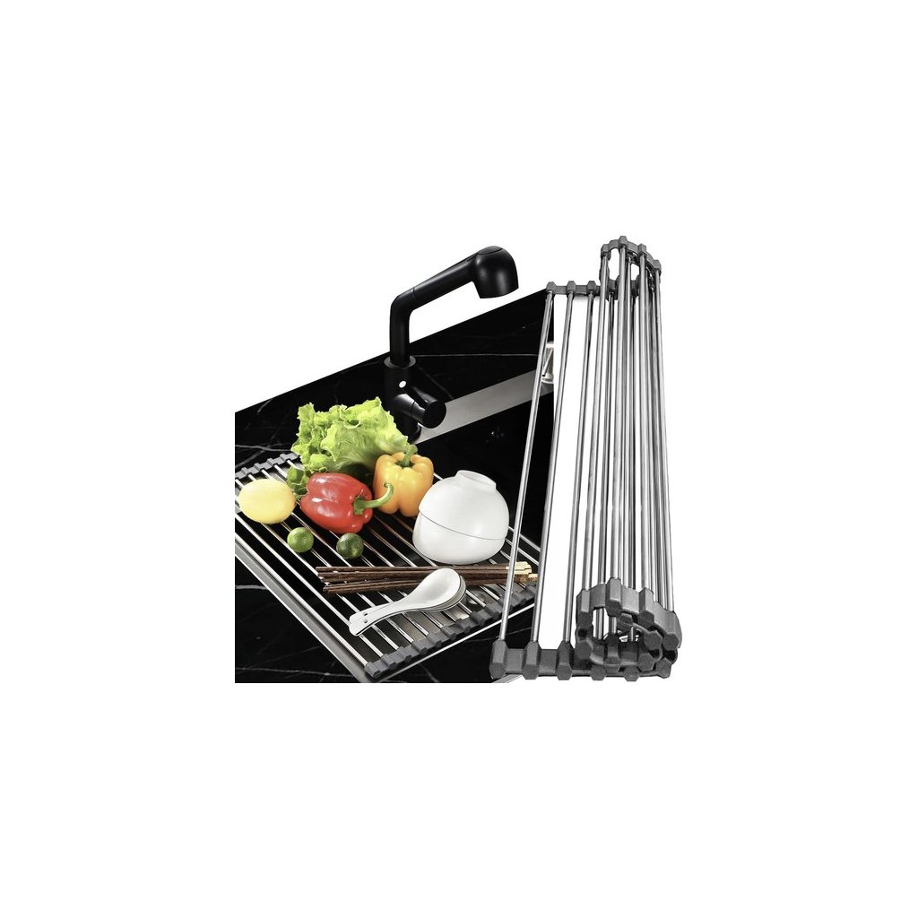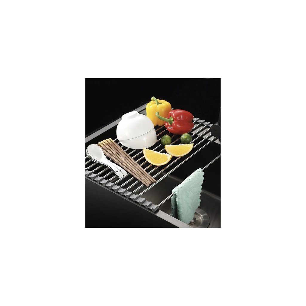 Odkvapkávač pomáha udržiavať poriadok na kuchynskej doske, umožňuje organizovať a sušiť riad. Vďaka nemu sa voda z riadu nevylieva, čo pomáha udržiavať čistotu a poriadok. Okrem toho vám umožní nielen vysušiť riad po umytí, ale aj opláchnuť a sušiť ovocie a zeleninu bez vyberania riadu z drezu. Používajte ho aj ako stojan na horúce hrnce a riad. Odkvapkávač má silikónové lemy, ktoré chránia povrchy drezov a drezov pred poškriabaním. Chráni tiež riad pred poškodením spôsobeným umiestnením priamo na tvrdé povrchy. Odkvapkávač na riad je užitočná vychytávka do kuchyne, ktorá pomáha sušiť riad ihneď po umytí. Odkvapkávač sa dá zrolovať, takže pri skladovaní nezaberie veľa miesta. Podložku ľahko uložíte aj do malej skrinky.