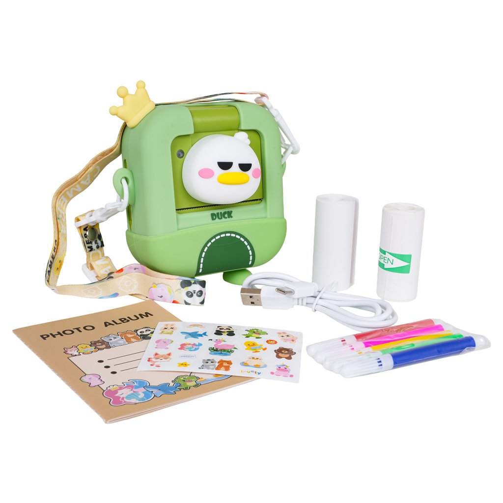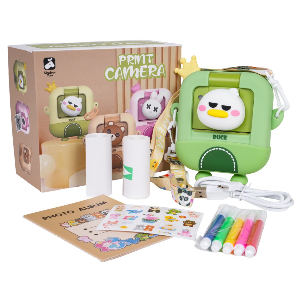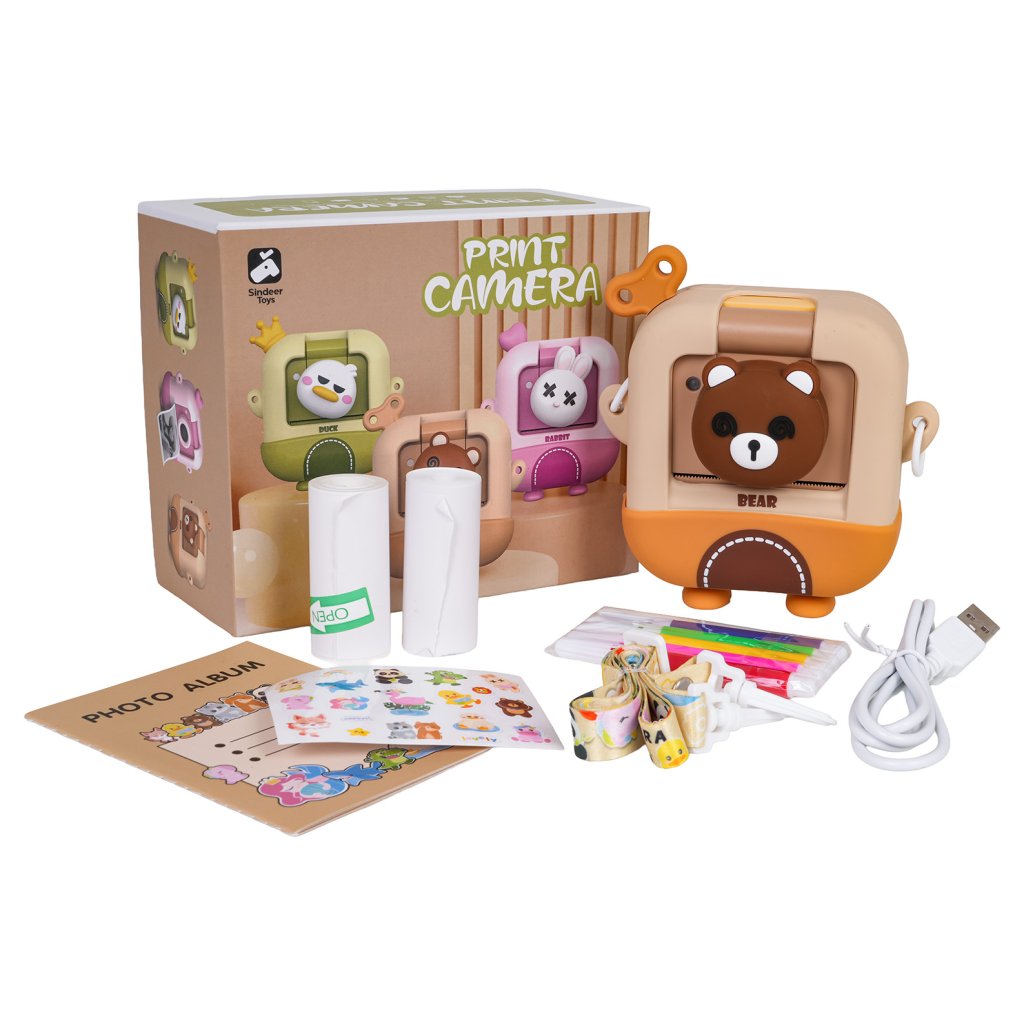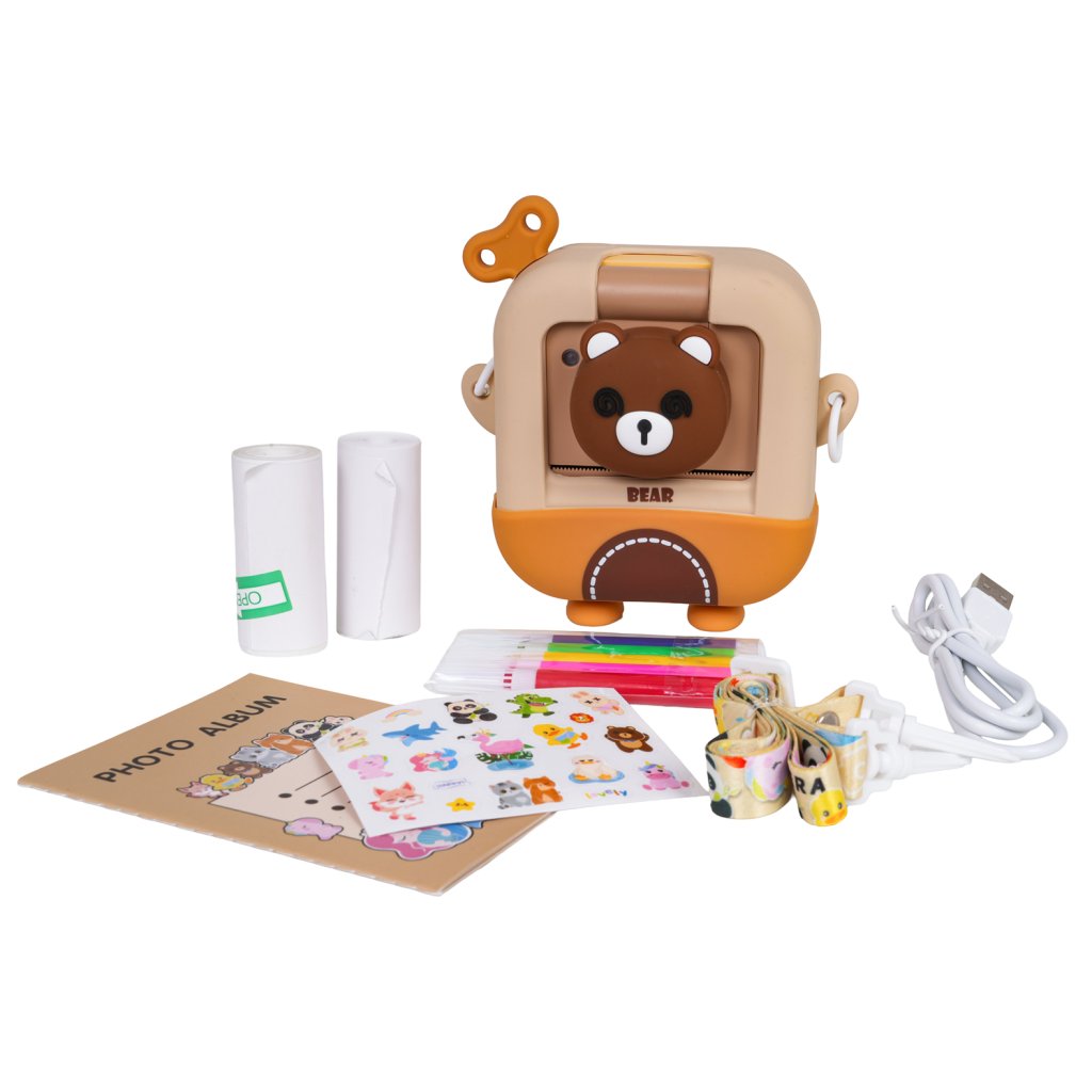 Fotoaparát je dostupný v motívoch medveďa alebo kačičky, vďaka čomu je ešte hravejší a atraktívnejší pre malých fotografov. Okrem tlače fotiek ponúka aj funkciu nahrávania videí, slot na pamäťovú kartu a rôzne fotografické efekty, takže deti môžu experimentovať a rozvíjať svoju kreativitu.