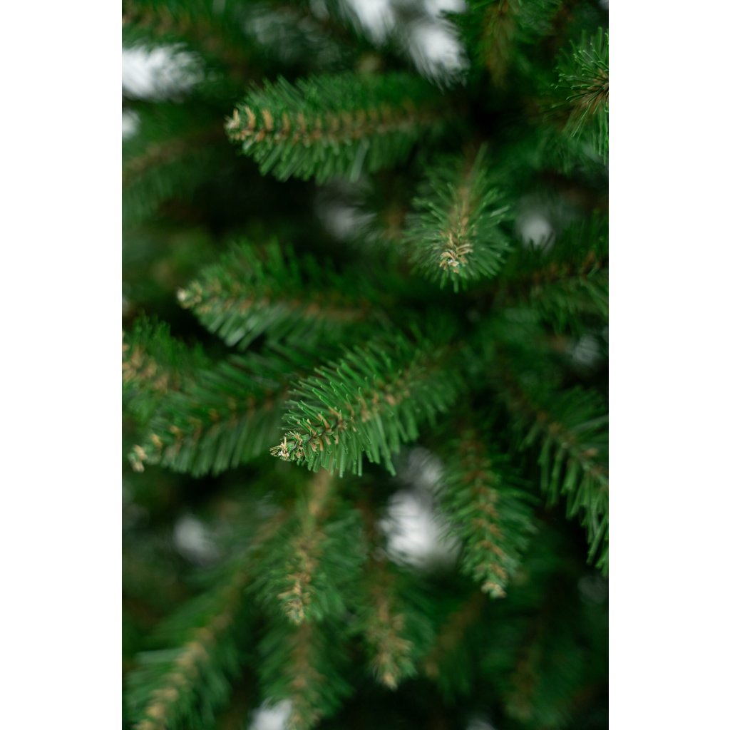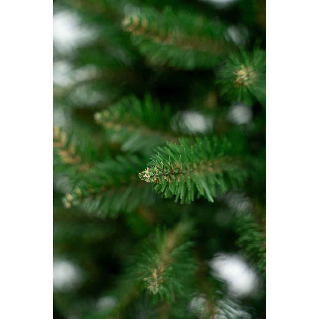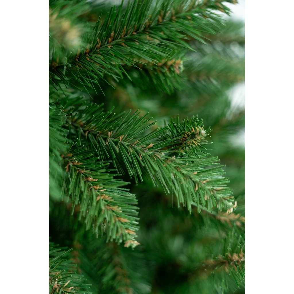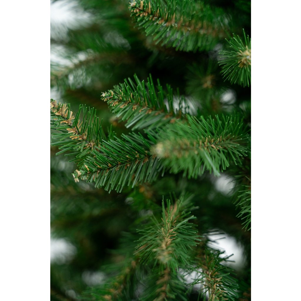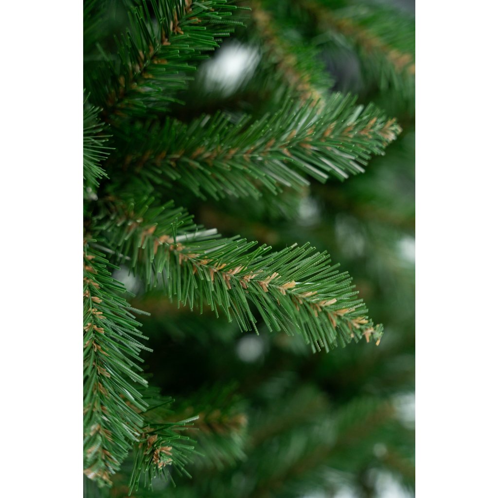 Vetvičky stromčeka sú štíhle a úzke, osadené tvrdým ihličím v stredne zelenej farbe s dĺžkou približne 3 cm. Pre zvýraznenie prirodzeného efektu je v ohybe každej vetvičky umiestnené krátke tmavohnedé ihličie (cca 5 mm), ktoré imituje živý výhonok a dodáva stromčeku autentický vzhľad.