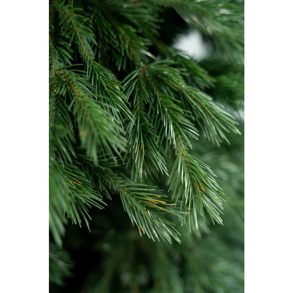 PE vetvičky sú rozmiestnené po obvode stromčeka, aby vytvorili prirodzený 3D efekt ako pri živom stromčeku. PVC výplň vo vnútri konštrukcie zabezpečuje hustotu a výrazný tvar koruny od spodných až po horné poschodia vetvenia.