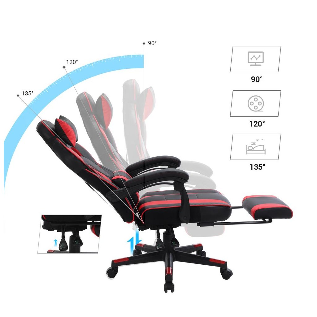 Nekonečné pohodlie: Táto herná stolička s nastaviteľnou chrbtovou opierkou je vybavená bedrovým vankúšom, opierkou na nohy, vankúšom a tichými kolieskami, takže vaše telo môže relaxovať, keď sa sústredíte – pohodlný luxus pre vaše štúdium.