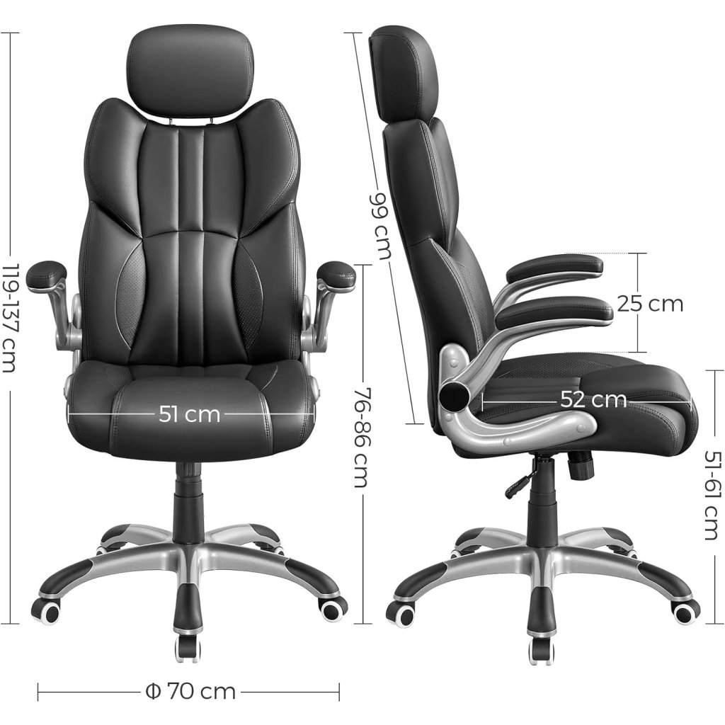 Stoličky značky SONGMICS predstavujú kvalitu, bezpečnosť, moderný dizajn a výbornú ergonómiu sedenia. Všetko, čo dnešný moderný užívateľ vyžaduje od stoličky pre dlhodobé sedenie. Vysoko kvalitný PU povrch je pohodlný a ľahko sa čistí. Extra silné polstrovanie umožňuje optimálne pohodlie sedenia a sľubuje dobrú elasticitu a lepšie prispôsobenie. Nedá sa ľahko zdeformovať. Ergonomický dizajn sa prispôsobuje držaniu tela. Celková výška stolička je nastaviteľná od cca. 120-137 cm, operadlo je vysoké cca 91 cm, výška sedadla je nastaviteľná od cca 45 - 53 cm. A stoličku je možné voľne otočiť o 360 ° pomocou kývavého mechanizmu.
