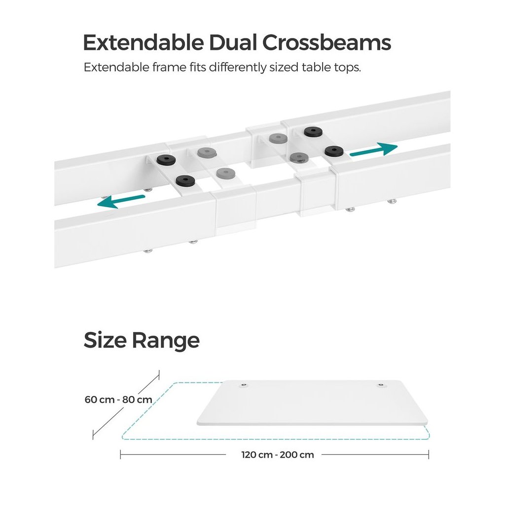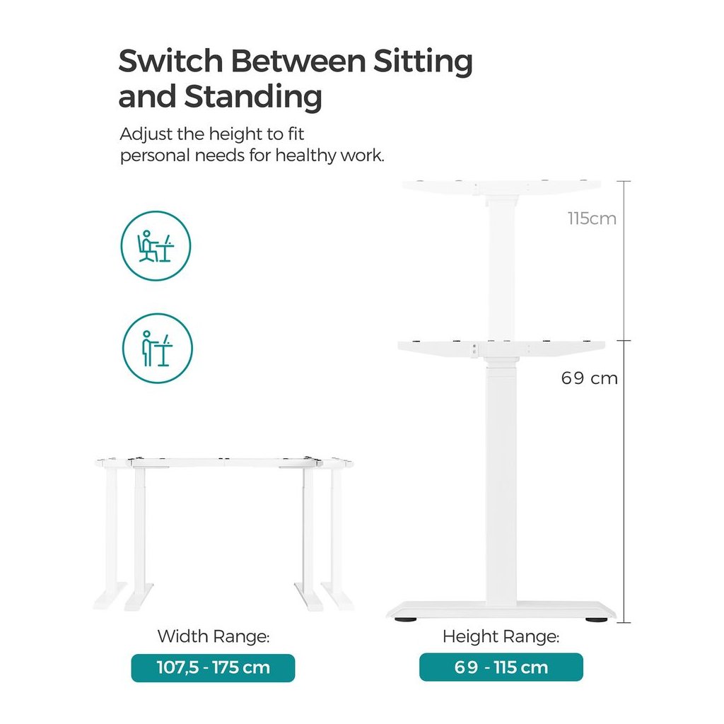 Tento rám stola je nastaviteľný od 69 do 115 cm, vhodný pre osoby s výškou 1,1 - 1,95 m, sediace alebo stojace? Nájdite si ideálnu polohu, aby ste svojmu telu uľavili a uč sa alebo pracuj efektívne. Dvojité oporné tyče, oceľová konštrukcia, dvojitý motor a nastaviteľné nožičky, ktoré možno nahradiť 4 kolieskami, dodávajú tomuto stolovému stojanu vysokú stabilitu a nosnosť 120 kg.