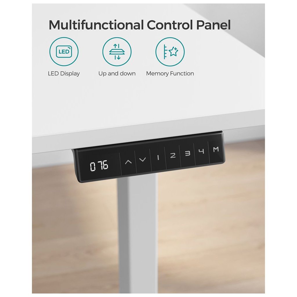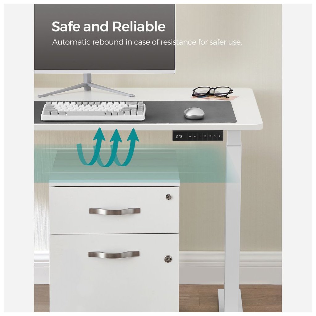 - Praktický dizajn: pomocou tlačidiel ušetríte 4 výšky; z bezpečnostných dôvodov sa výškové nastavenie zastaví a mierne zasunie stôl, keď počas jazdy narazí na prekážku.