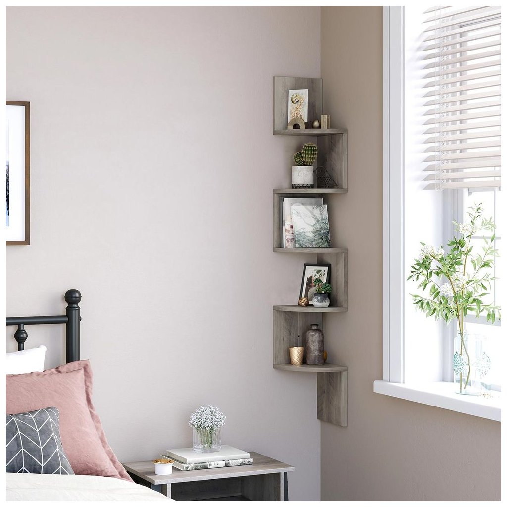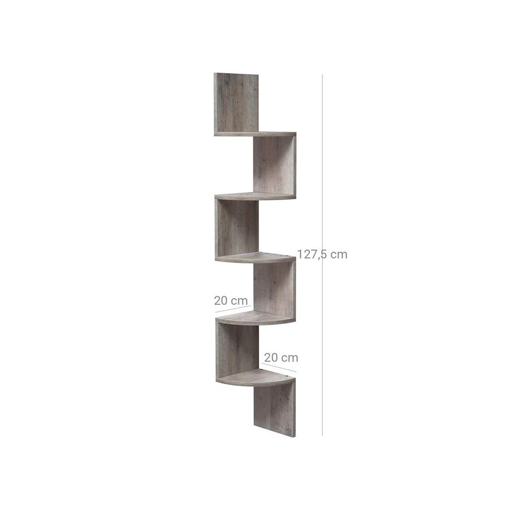 Táto rohová polica ponúka dostatok miesta na dekoratívne predmety, domáce potreby a knihy a dokonale zapadne do vášho životného prostredia.