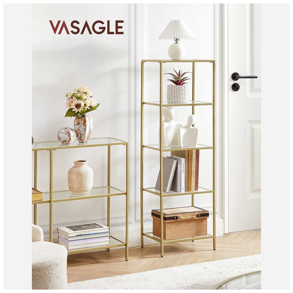 Stojanová polica VASAGLE LGT029A01 – zlatý rám a 5 sklenených políc