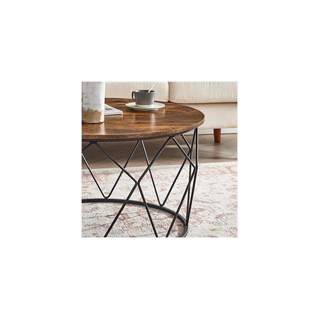 Štruktúra, pevná a stabilná: 8 čiernych oceľových diamantov sa spája s robustnou drevotrieskovou doskou, vďaka čomu je tento okrúhly konferenčný stolík stabilný a vydrží roky. Konferenčný stolík s kruhovou klietkou v industriálnom štýle, označené časti, ilustrované pokyny a štýlový spôsob, ako vylepšiť svoj životný priestor.
