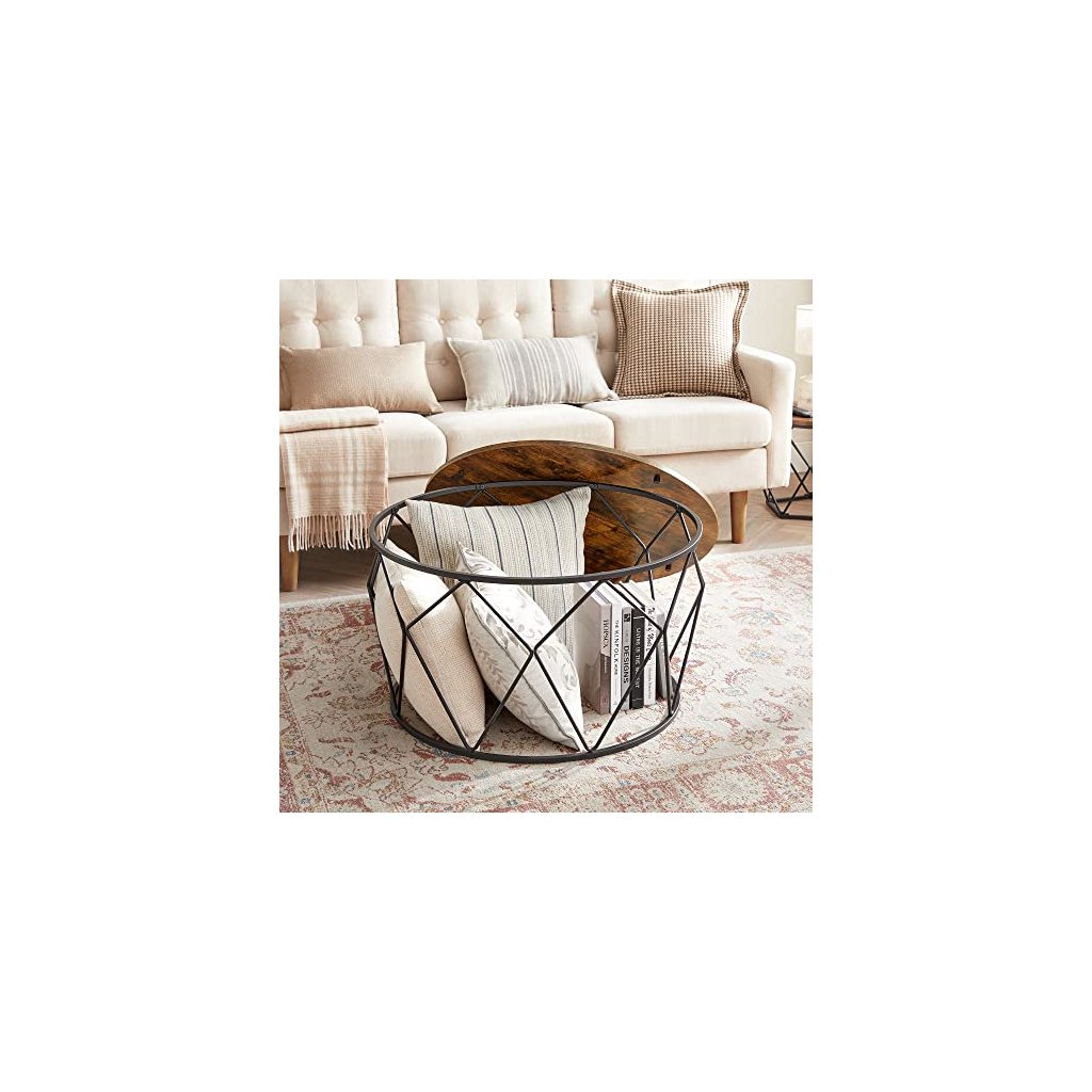 Kombinácia dizajnu rámu s diamantovým vzorom a okrúhlej stolovej dosky robí z tohto konferenčného stolíka s očarujúcim vzhľadom pozornosť vo vašej obývačke. Veľký vrch s priemerom 80 cm možno použiť na podávanie kávy, nápojov a šálok. Zdvihnite vrchnú časť a môžete pod ňu uložiť aj deky, vďaka čomu bude fungovať každý centimeter.
