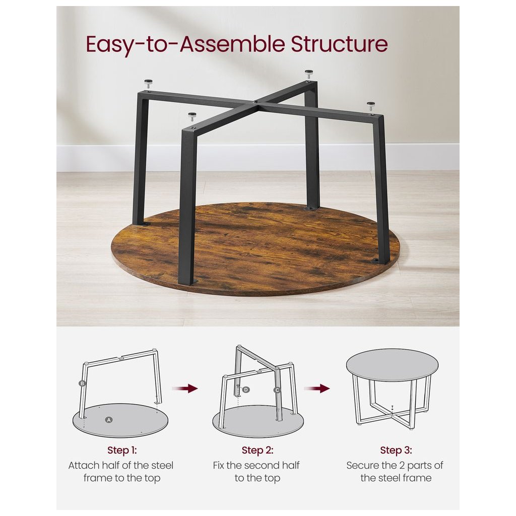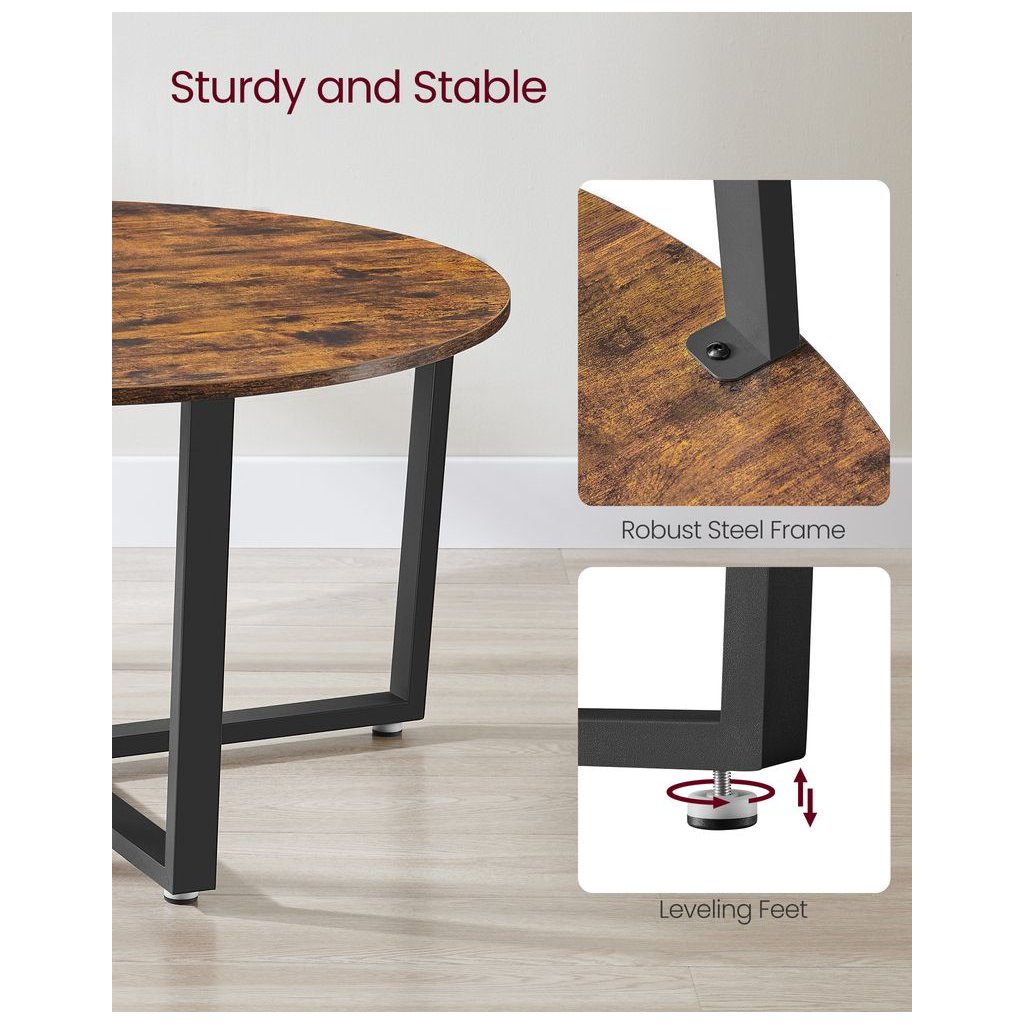 - Štýlové prevedenie: Doska stola má rustikálne drevené zrno, ktoré dodáva príjemný vintage vzhľad, zatiaľ čo čierne oceľové nohy zaisťujú stabilitu a moderný vzhľad.