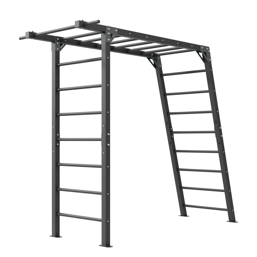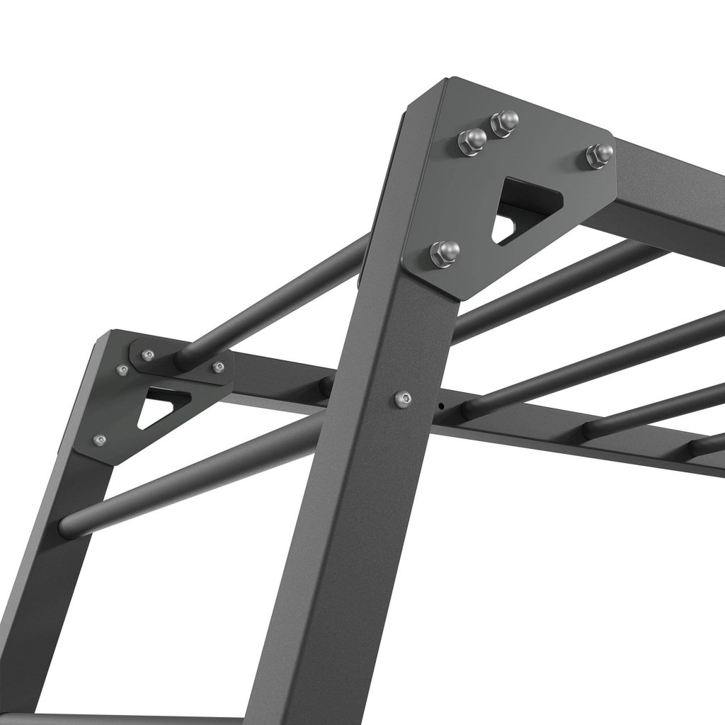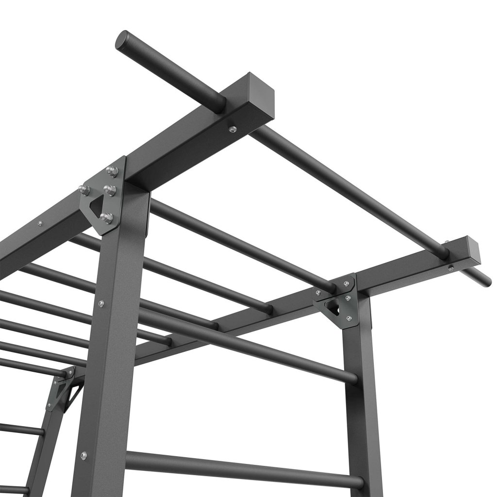 Horizontálny rebrík – umožňuje zhyby, visenie a tréning úchopu. Jedna z priečok je predĺžená a slúži ako hrazda pre široký a úzky úchop.