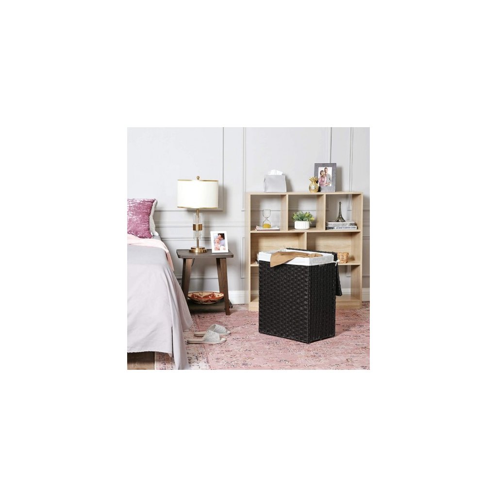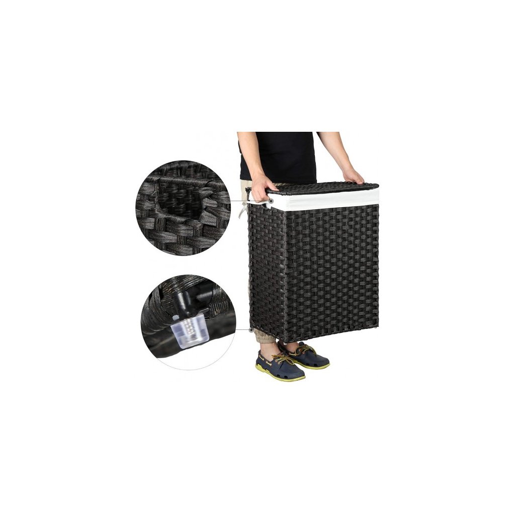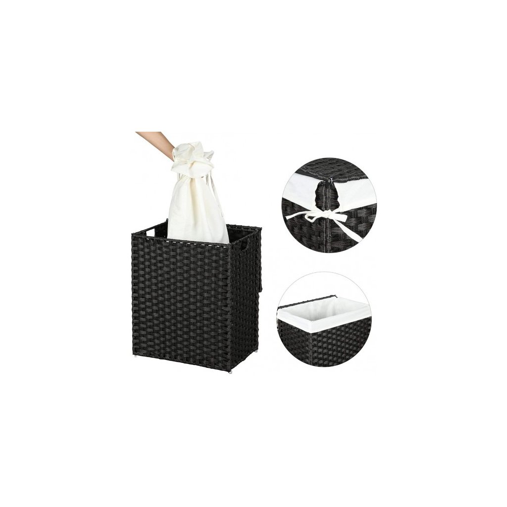 Tento nádherný tkaný, syntetický, ratanový koš na bielizeň v prírodnej farbe je starostlivo vyrobený a je chýbajúci kúskom, ktorý potrebujete na skrytie svojho špinavého oblečenia a udržanie svojho domova v dokonalom poriadku. Bez obáv umiestnite svoj kôš na oblečenie, kam chcete; odolný syntetický ratan je vodeodolný a stabilný železný rám je nehrdzavejúci, vďaka čomu je ideálnym spoločníkom aj do vlhkých kúpeľní. Už ťa nebaví vláčiť svoj starý ťažký kôš na bielizeň do práčky? Teraz môžete jednoducho odviazať vrecúško z koša a ľahko sa po ňom prejsť; alebo bez námahy prenášajte tento 90-litrový kôš s vekom pomocou bočných rukovätí. Kôš na bielizeň je možné zložiť v priebehu niekoľkých minút a zložiť na uskladnenie; vložka je pripevnená k košu, aby sa zabránilo jeho pádu; silikagélové nožičky zabraňujú kontaktu koša so zemou. Ručne tkaný kôš na bielizeň s odnímateľnou vložkou a bočnými držadlami, ktorý funguje ako spôsob, ako uložiť bielizeň mimo dohľadu alebo ako úložný box.