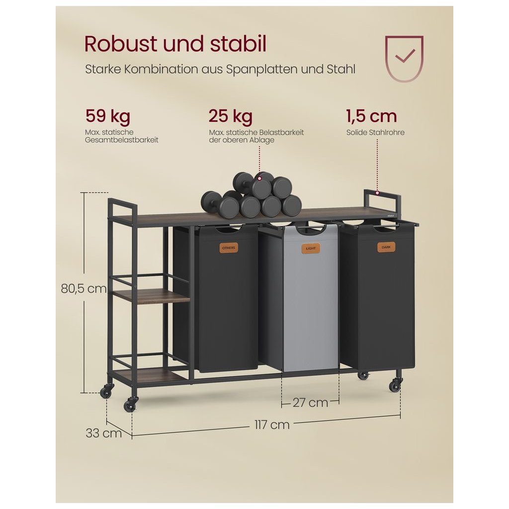 VASAGLE trojkomorový kôš na bielizeň s kolieskami – BLH312B01