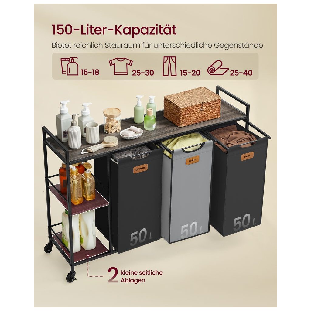 Ak hľadáte praktické riešenie na rýchle triedenie, odkladanie a organizáciu bielizne, kôš na bielizeň VASAGLE BLH312B01 je presne to, čo potrebujete. Tento premyslene navrhnutý triedič vám uľahčí každodennú domácu rutinu a prinesie systém do vášho prania. Vďaka trom priestranným 50-litrovým komorám ponúka až 150 litrov úložného priestoru, čo je ideálne pre rodiny, páry aj väčšie domácnosti.