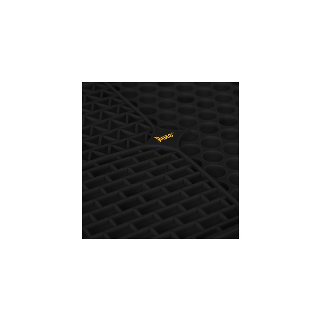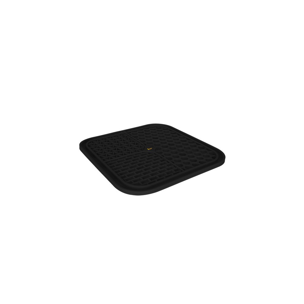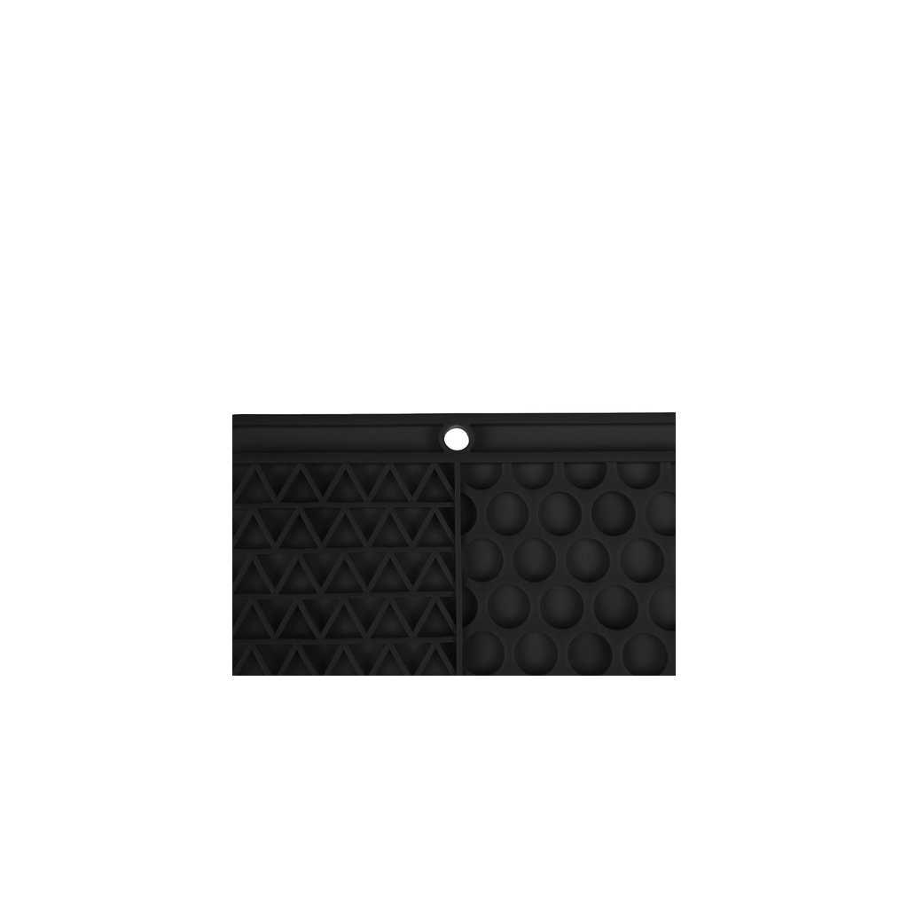 Spodná vanička je vybavená pevnými prísavkami, vďaka ktorým sa dá jednoducho namontovať na vaňu alebo sprchovací kút. Dá sa pripevniť aj na podlahu, aby si z nej váš miláčik mohol ľahko olizovať pochúťky. Jej gumené výstupky masírujú ďasná a jazyk, čím zaisťujú ústnu hygienu. Podložka zabraňuje tomu, aby zvyšky jedla zostávali v ústach domáceho maznáčika, čím sa eliminuje problém s množením baktérií a tvorbou nepríjemných pachov. Ak váš maznáčik konzumuje prakticky každé jedlo, podložka na kŕmenie môže byť veľmi nápomocná. Vďaka drážkam musí zviera trochu pracovať, kým vynesie maškrty. Toto riešenie podporuje pomalú konzumáciu jedla, a tým môže prispieť k správnemu tráveniu.