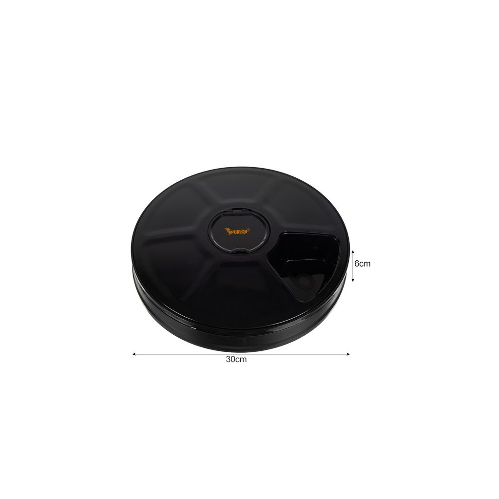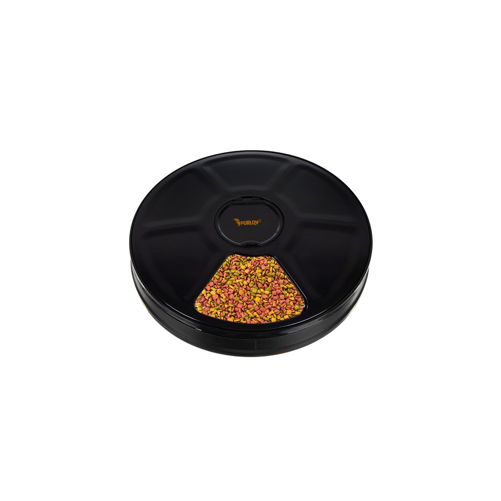Misa má 6 komôr s objemom každej 150 ml. 5 sú zakryté a jedna je otvorená. Systém časovaného otvárania otvára jednu potravinovú komoru v určitom čase pri otočení veka. Je to zariadenie, ktoré zlepší kŕmenie Vášho miláčika. Vďaka funkcii časového programovania sa už nemusíte starať o pravidelnosť kŕmenia. Automatický dávkovač jedla sa bude sám podávať vo vami zvolených časoch. Ďalšou výhodou je LED displej. Všetky časti dávkovača sú odnímateľné pre ľahké čistenie. Niektoré časti sú vhodné do umývačky riadu, napríklad veko a podnos na potraviny. Kŕmidlo pripomenie vášmu miláčikovi vo vami nastavenom čase pomocou "vtáčieho štebotu", že jedlo bolo naservírované. Miska je napájaná batériami, takže nebude problém so zamotaným káblom.