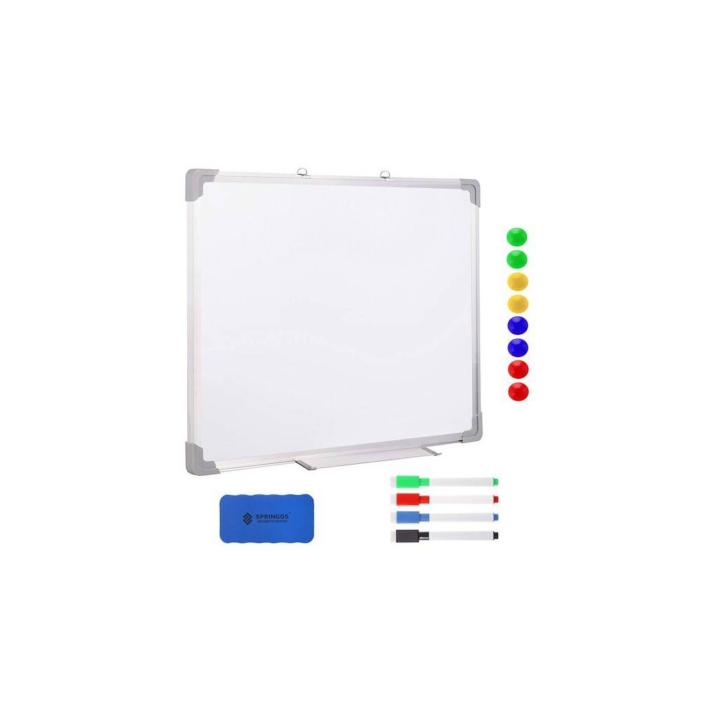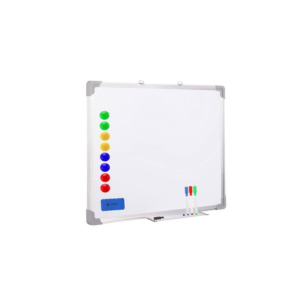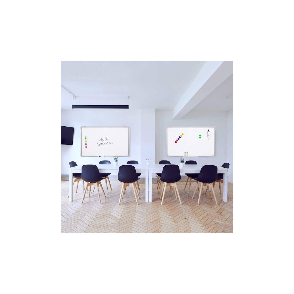 Magnetická tabuľa stierateľná za sucha je moderná forma tabúľ, aby ste na ne mohli písať bez použitia špinavej kriedy. Biely magnetický povrch umožňuje písať naň fixkami , ktoré je možné utrieť do sucha, ako aj umiestňovať naň poznámky alebo plány hodín pomocou magnetov. V záujme bezpečnosti dospelých aj detí je doska vybavená plastovou ochranou v rohoch . Nastaviteľné umiestnenie háčikov je ideálne pre jeho správnu montáž na stenu . Pri prezentovaní alebo písaní vlastných poznámok sa oplatí mať so sebou fixky a špongiu, preto je naša tabuľa vybavená spodnou policou s potrebným príslušenstvom . Fixky a špongiu je možné si dokúpiť samostatne, nie sú súčasťou balenia!