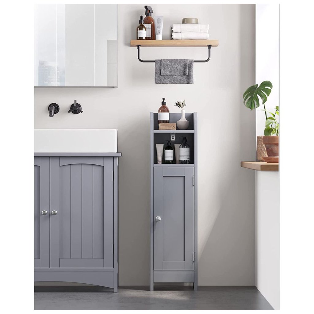 VASAGLE úzka kúpeľňová skrinka s dvierkami – sivá BBC310P36