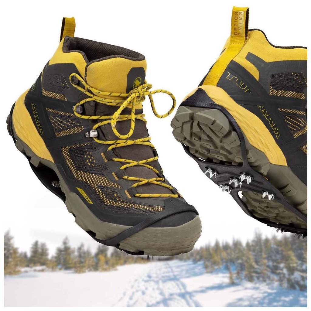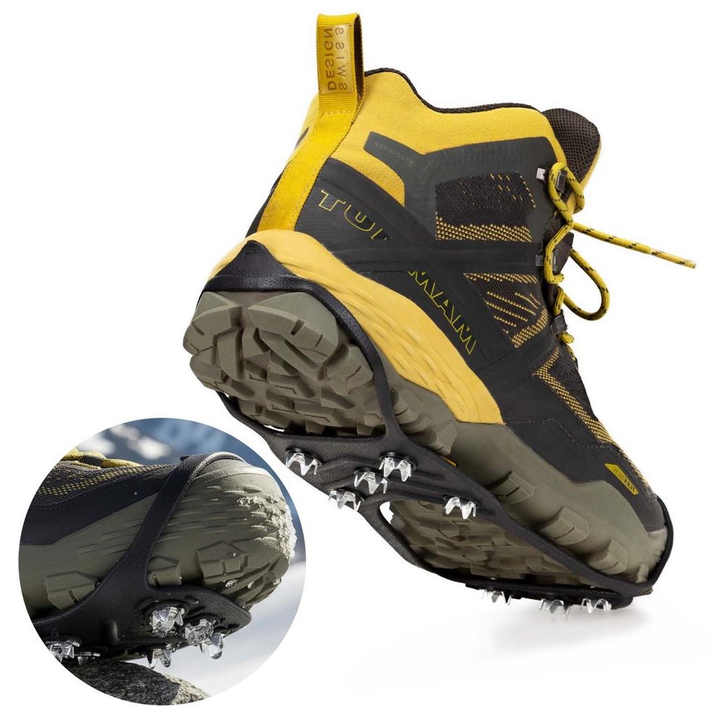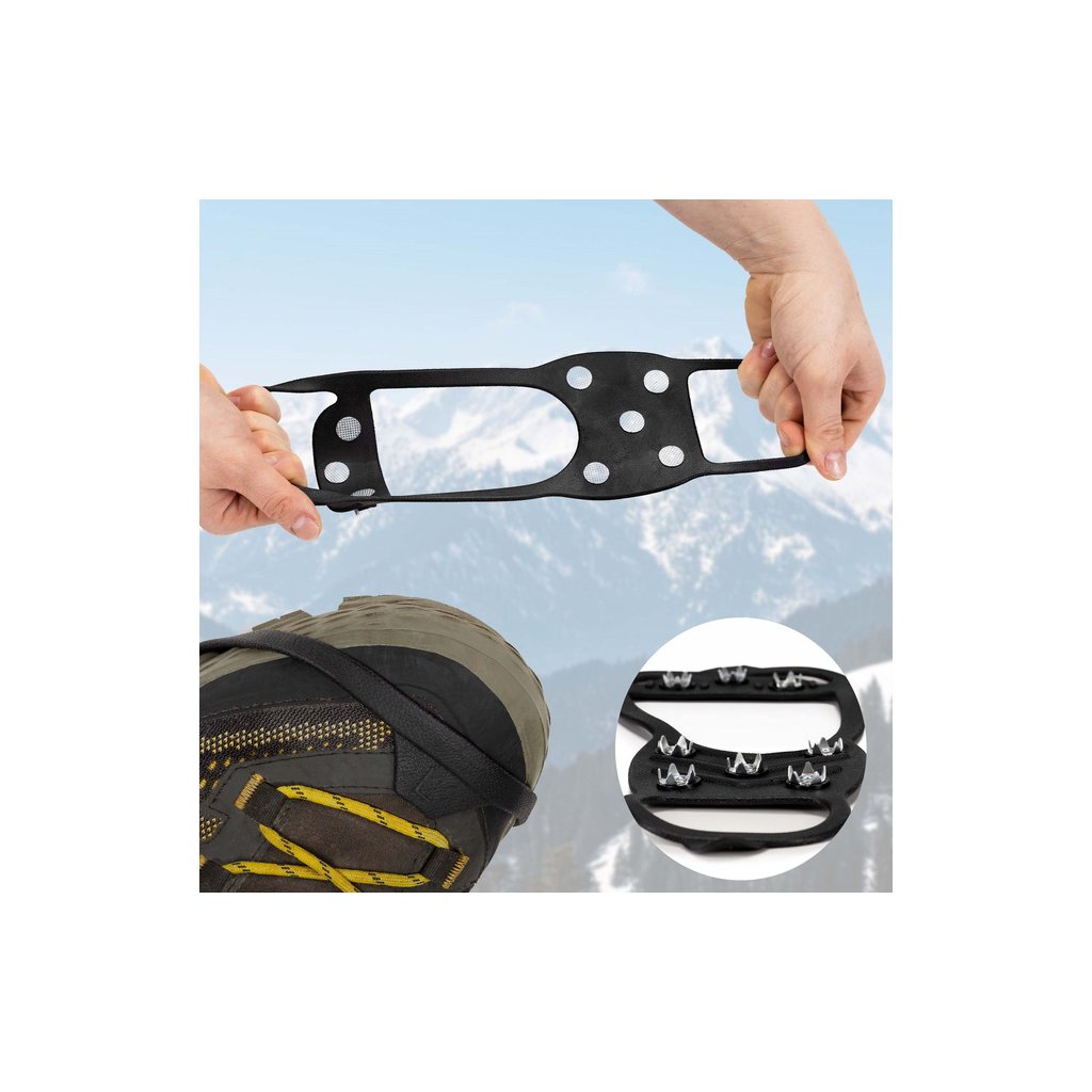 Návleky s hrotmi zlepšujú trakciu na snehu, ľade, bahne alebo zmrznutej pôde, čím výrazne znižujú riziko pošmyknutia a pádu. 16 odolných oceľových hrotov (8 na každej topánke) sa pevne zarezáva do podkladu a poskytuje stabilnú oporu aj v náročných podmienkach. Sú ideálne pre turistov, poľovníkov, záhradkárov, ale aj pre každodenné použitie v meste.