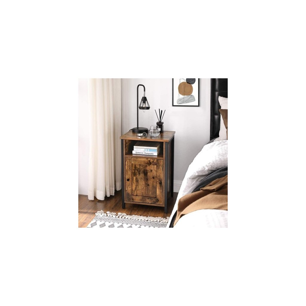 Koľkokrát ste už premýšľali o rekonštrukcii svojej izby pred spaním? Vďaka kombinácii rustikálnych panelov a čierneho kovu je tento nočný stolík zmenou, na ktorú ste čakali. Na tento odkladací stolík dáte všetko, čo potrebujete k spánku -nočnú lampu, niekoľko kníh, budík atď. Ľahko zatlačte na dvere tohto kompaktného stola s rozmermi 40 x 40 x 60 cm a odhalí veľkú priehradku, ktorú je možné rozdeliť pomocou výškovo nastaviteľnej police, ktorá poskytne priestor všetkým vašim potrebám. Robustný bočný stolík vyrobený z drevotrieskovej dosky a oceľového rámu, všestranný nástroj, ktorý môže fungovať skvele ako nočný stolík, alebo vám vedľa pohovky poskytne kávu a občerstvenie, a spôsob, ako okoreniť váš domov.