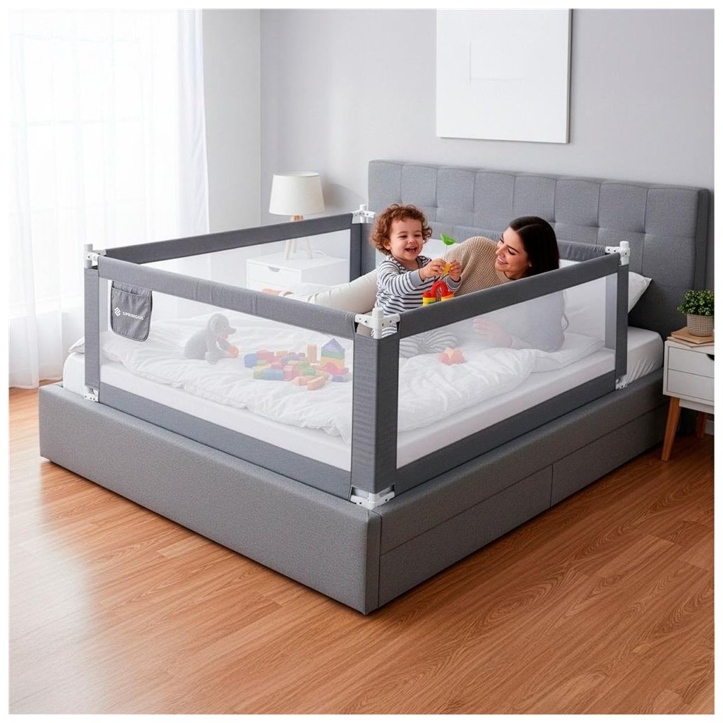 Zábrana na posteľ 200 cm, univerzálna, skladacia, pre deti, sivá SPRINGOS HA7526 – bezpečný a praktický pomocník do každej detskej izby