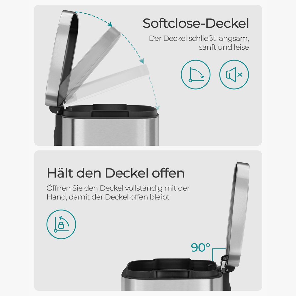 Jedným z najväčších benefitov tohto modelu je tichý mechanizmus zatvárania. Vďaka širokému pedálu a zabudovanému tlmiču sa kôš otvára bezdotykovo, hladko a zatvára takmer nehlučne. Oceníte to najmä v noci alebo pri malých deťoch.