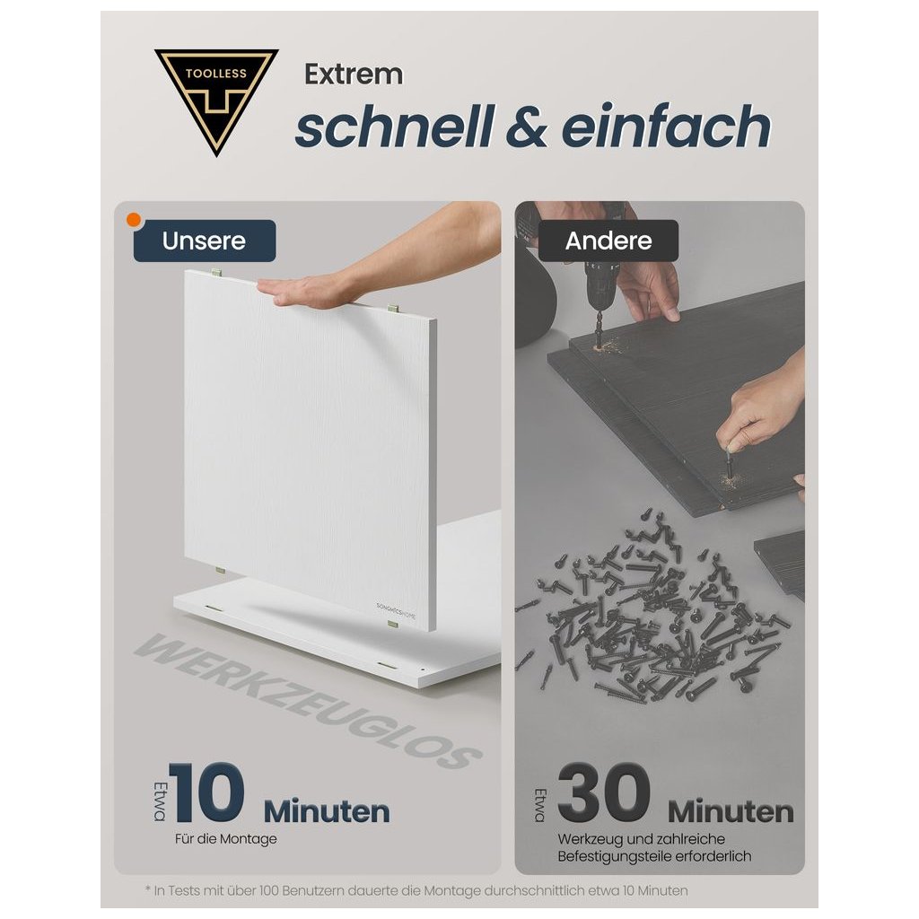 Skrinku zostavíš približne za 10 minút bez použitia akéhokoľvek náradia. Vďaka inteligentným zacvakávacím spojom je montáž rýchla, jednoduchá a bez zbytočných skrutiek.