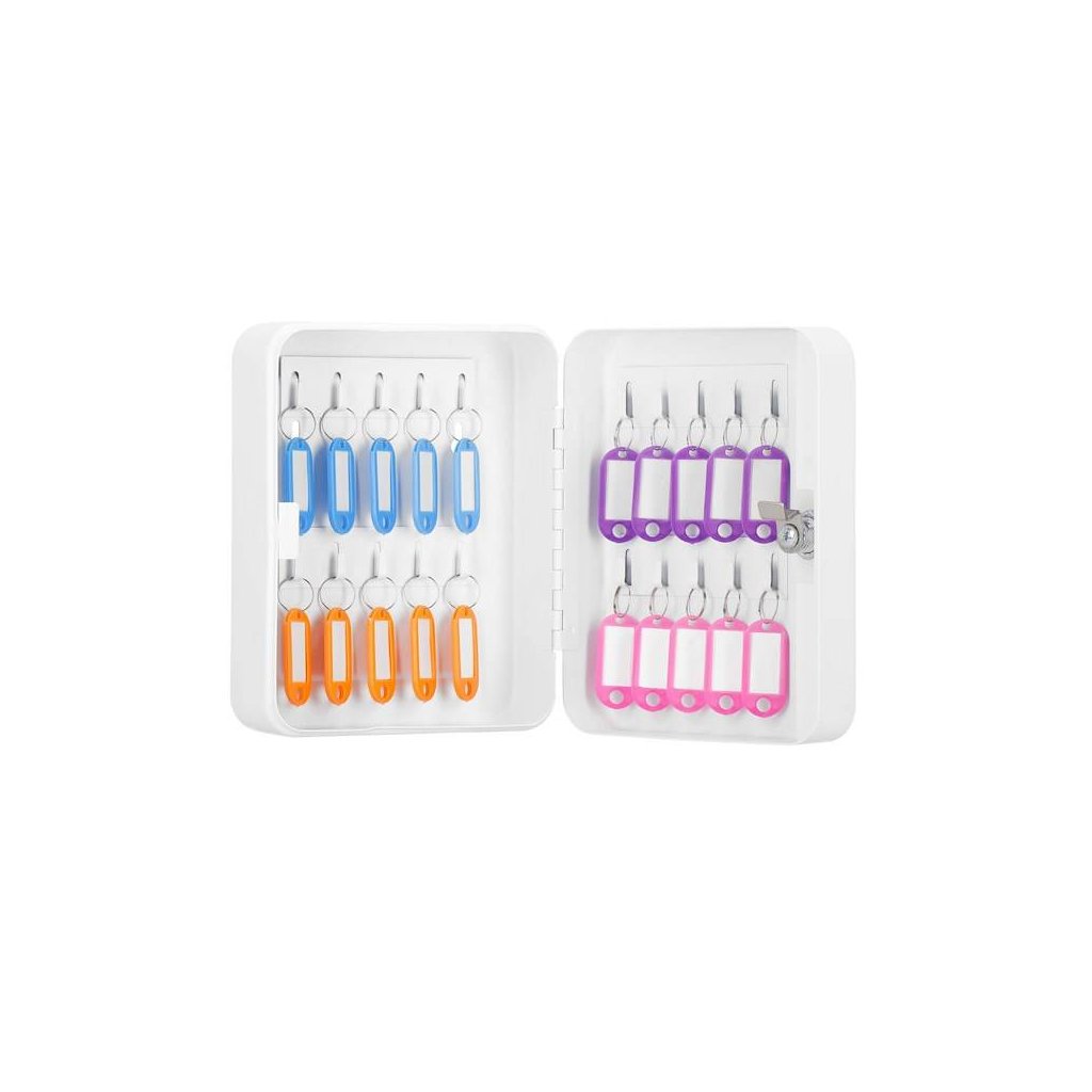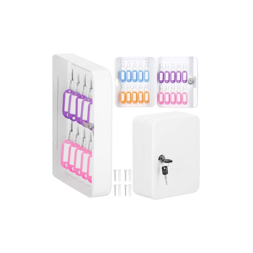 Oceľové puzdro je najlepším miestom pre pohodlné a bezpečné uloženie kľúčov. Umiestnený na diskrétnom mieste nebude pútať pozornosť, takže o jeho obsahu môžete byť pokojní. Skrinka Springos bude fungovať v kanceláriách, školách, vrátnikoch a spoločenských miestnostiach podnikov. Kazeta sa ľahko používa a je funkčná: má 20 háčikov na kľúče a možno ju namontovať na stenu pomocou otvorov vyvŕtaných na zadnej strane a pomocou dodaných skrutiek a hmoždiniek. K objednávke navyše pripájame 20 príveskov na kľúče, vďaka ktorým môžete všetky kľúče podpísať a udržať poriadok. Box je vyrobený z odolných a odolných materiálov, takže bude slúžiť roky.