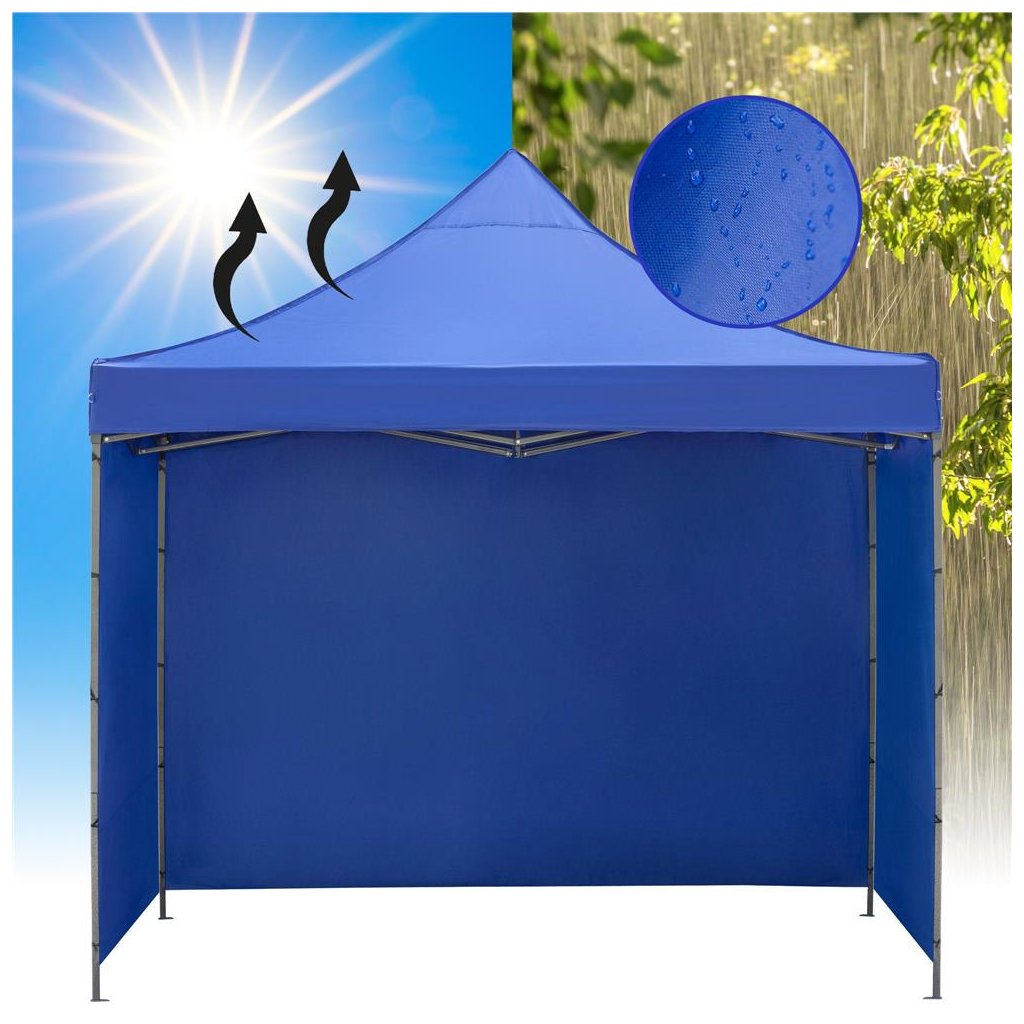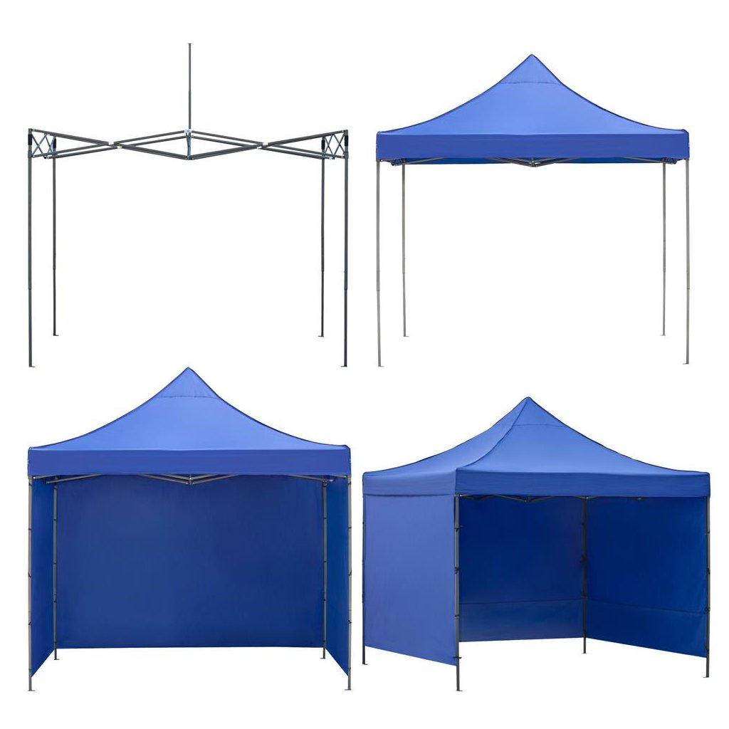 Tento výstavný pavilón poskytuje spoľahlivú ochranu pred slnkom, vetrom aj miernym dažďom, pričom si zachováva stabilitu a dlhú životnosť. Montáž zvládnete v priebehu niekoľkých minút a nastaviteľná výška umožňuje maximálne prispôsobenie vášmu prostrediu. Elegantná námornícka modrá farba pôsobí profesionálne a zapadne do každej záhrady, parku či mestského priestoru.