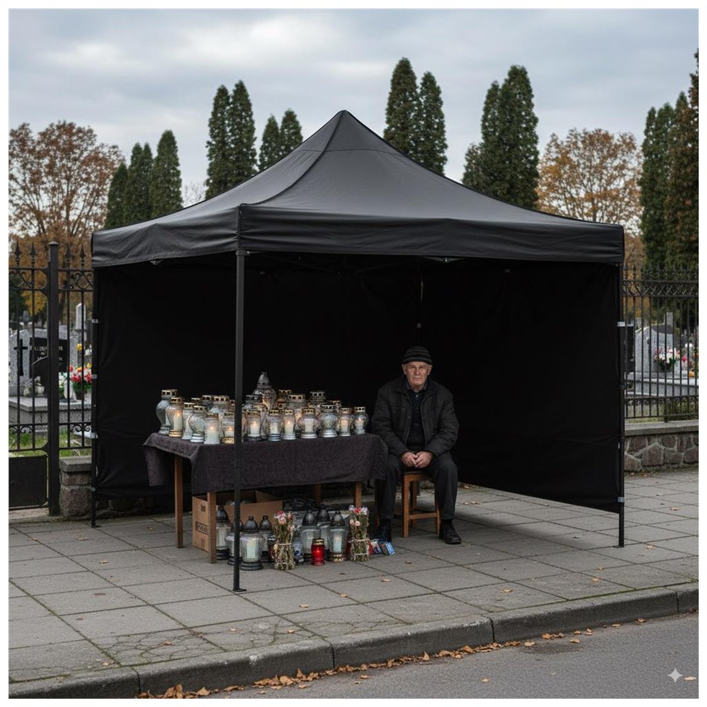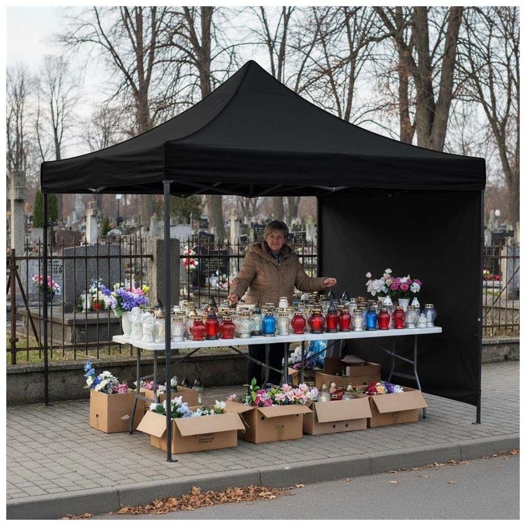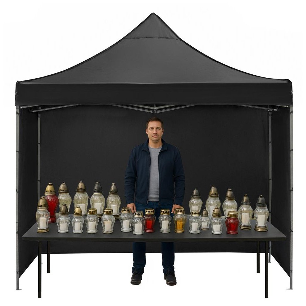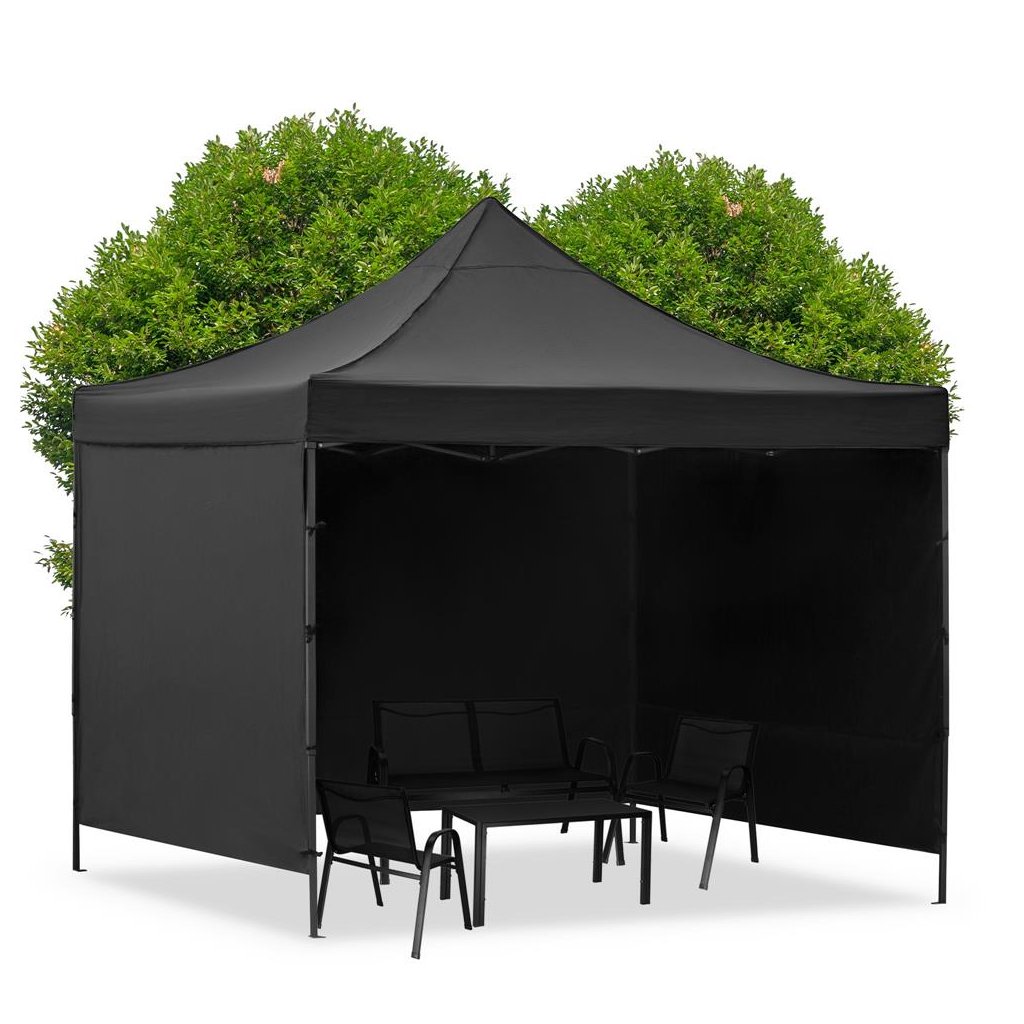 Nožnicový stan 3×3 m – záhradný pavilón pre veľtrhy, expresné akcie a catering, čierny Springos GP0004