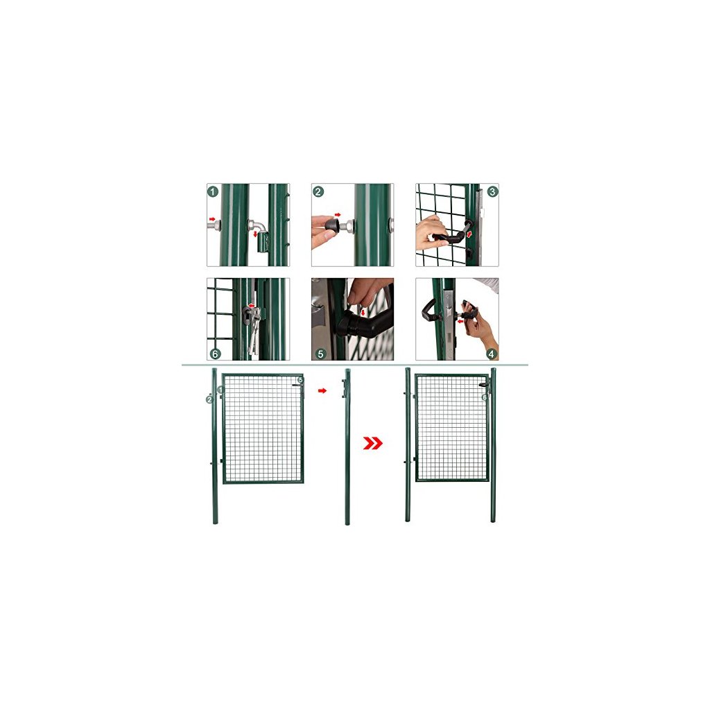 Ukážte len tú časť vašej záhrady, ktorá každého ohromia! Táto plotová brána len nechá vyniknúť krásu vašej záhrady a podčiarkne výrazný nádych vašej zelenej oázy vďaka jej mriežkovanému dizajnu a sýtej zelenej farbe. Vyrobená je z pozinkovaného železa s práškovým nástrekom a vybavená pevnými stĺpikmi, zváranými tyčami odolnými voči "bombe" a odolnými pántami, tieto záhradné dvere sú stabilné a odolné voči hrdzi a korózii. Má nerezové hliníkové kľučky dverí a kvalitný medený zadlabací zámok.
