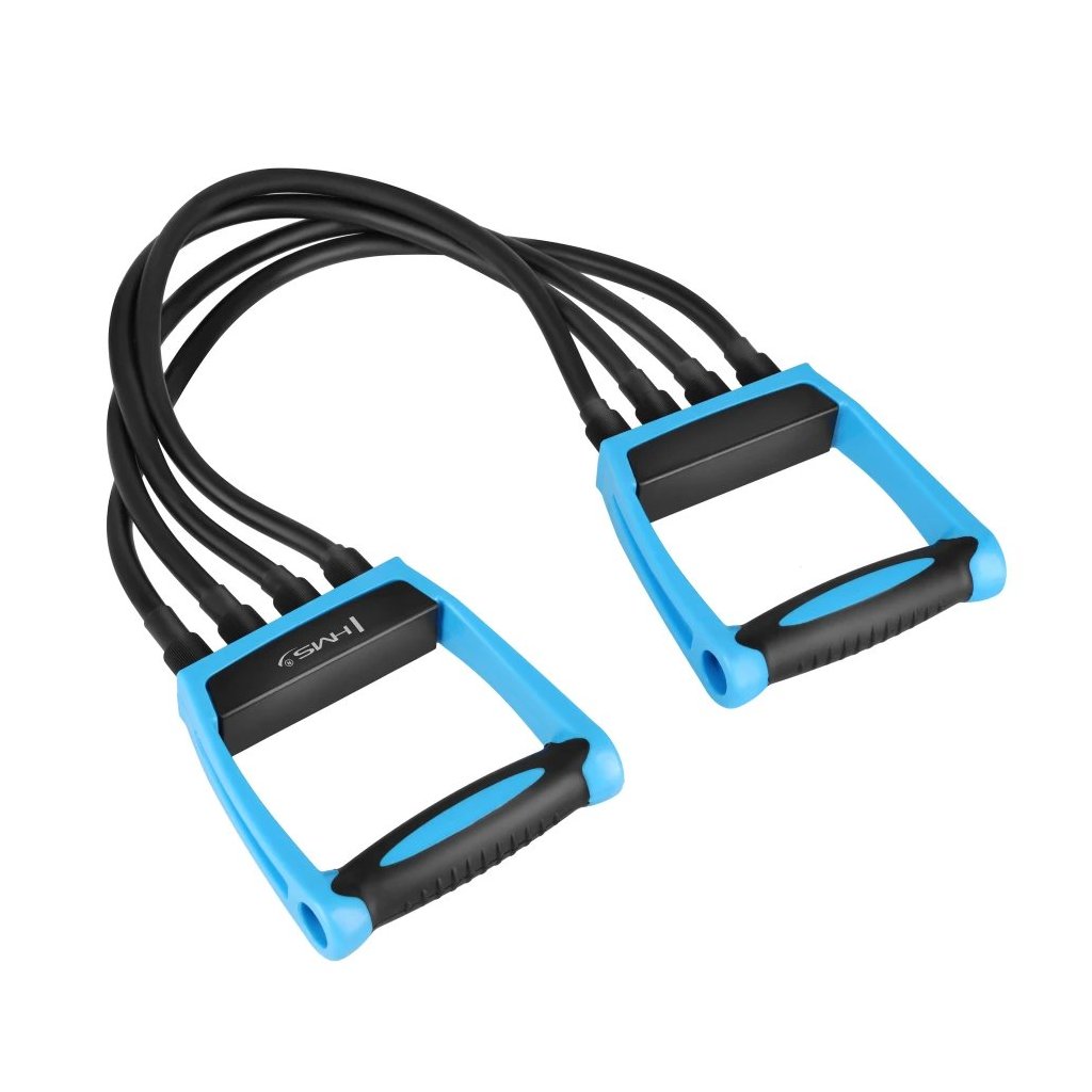 Gumový expandér HMS EM09 je praktická a odolná tréningová pomôcka určená na posilňovanie svalov hornej časti tela, zlepšenie svalovej kondície a podporu rehabilitačných cvičení. Vďaka konštrukcii so štyrmi gumovými strunami poskytuje rovnomerný a plynulý odpor, ktorý je ideálny pre bezpečný a efektívny tréning doma, v práci alebo na cestách.