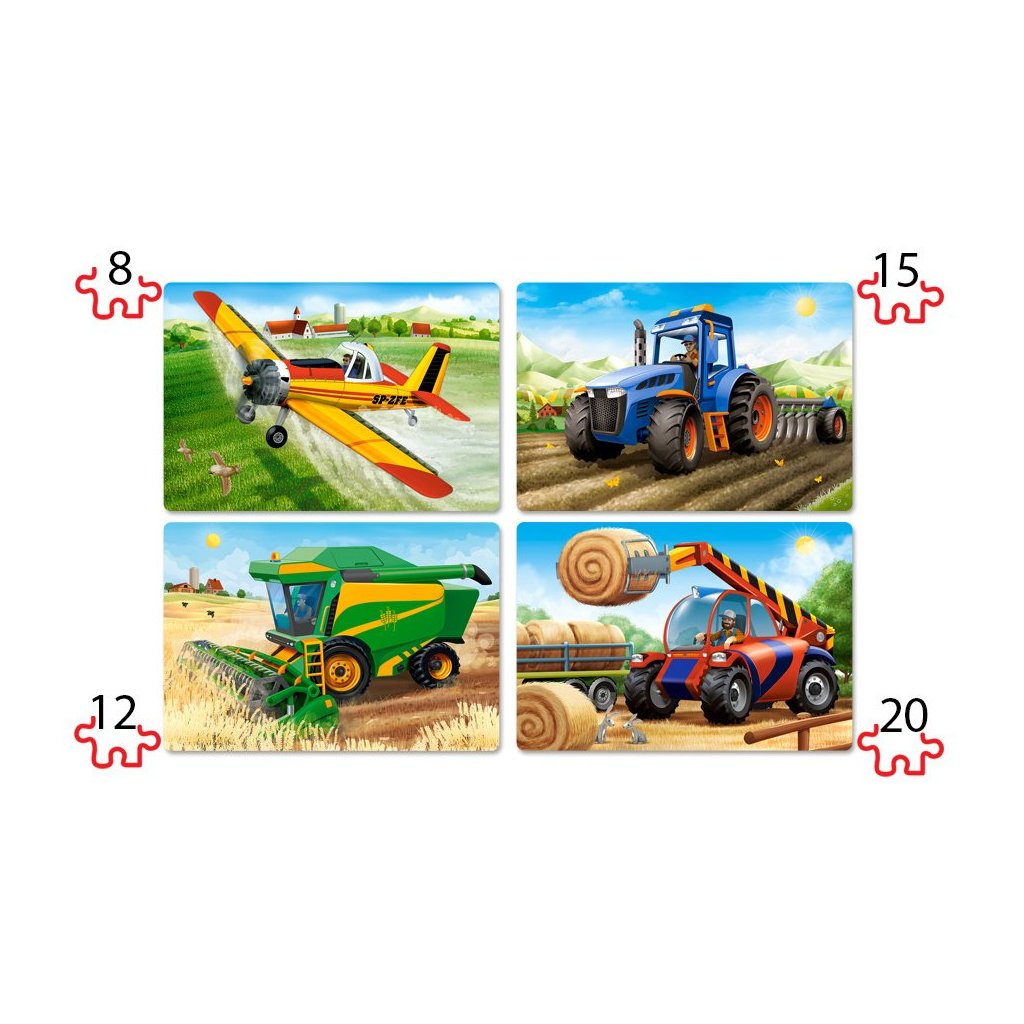 4v1 detské puzzle Poľnohospodárske stroje (8, 12, 15, 20 dielikov)
