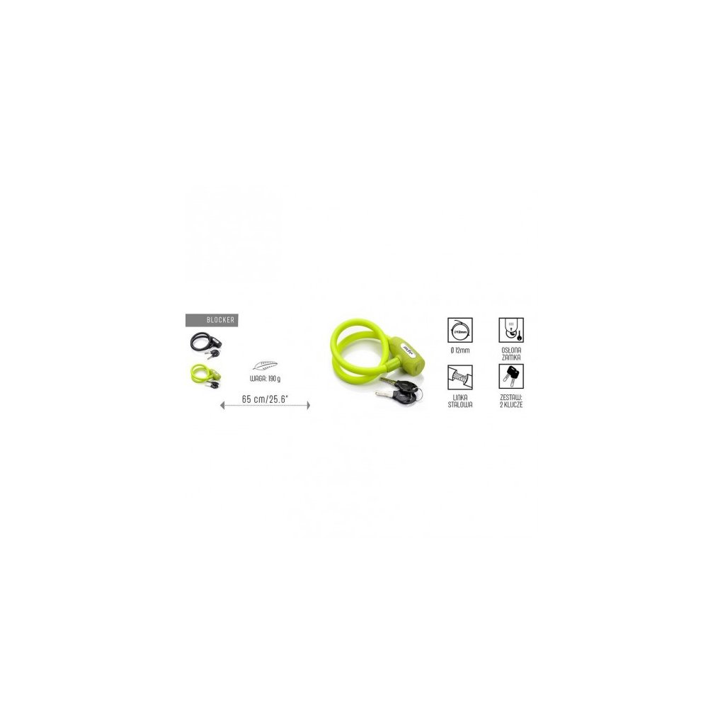 Pevnosť blokády sa získala pomocou oceľového kordu pokrytého pružným plastovým povlakom. Zámok na bicykel Meteor je vybavený krytom, ktorý chráni mechanizmus pred nečistotami. Sada obsahuje aj dva kľúče.