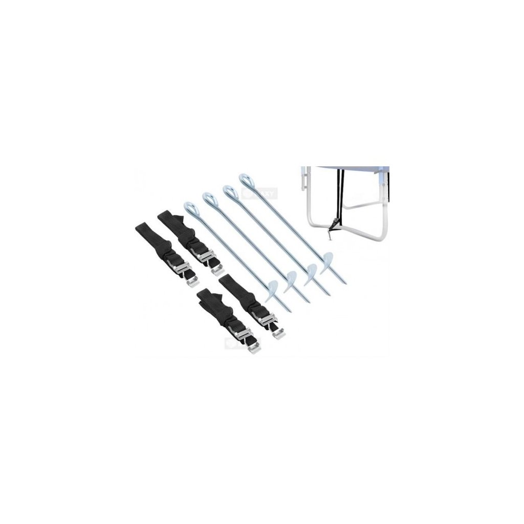 Súprava na ukotvenie záhradných trampolín značky Malatec obsahuje 4 kotviace háky a 4 pásky. Vďaka tejto súprave bude vaša trampolína stabilnejšia a nebude sa kývať či posúvať.