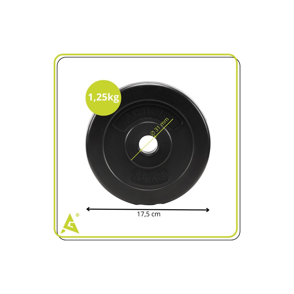 Cementové závažie Actiget 31 mm – 1,25 kg: presný a všestranný tréningový kotúč
