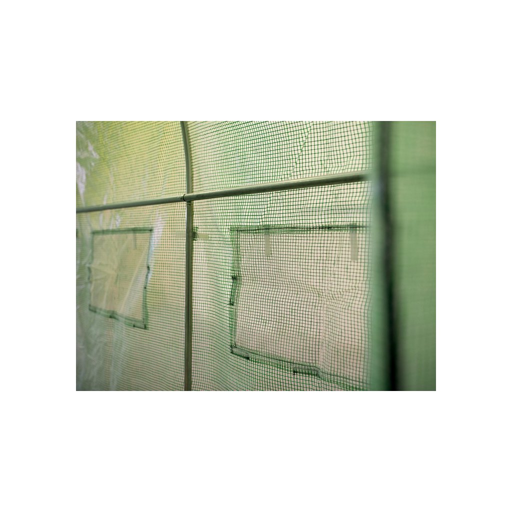 Prekrytie záhradného tunela je nielen praktickou ochranou, ale aj estetickým doplnkom. Priehľadná fólia so zelenou jemnou mriežkou dokonale zapadne do priestoru záhrady a zároveň rastlinám poskytne to správne množstvo svetla. Okná vybavené moskytiérou zaručujú stály prístup čerstvého vzduchu, ktorý je pre rast rastlín kľúčový.