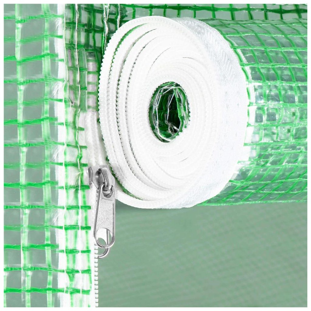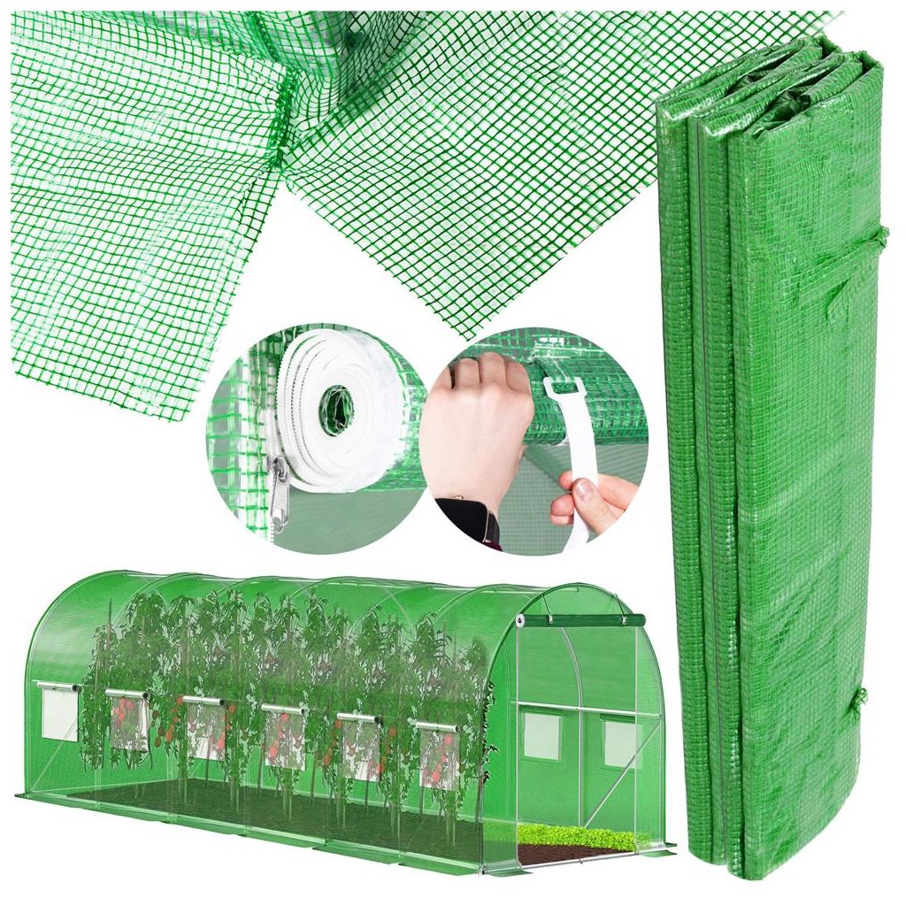 äPrekrytie záhradného tunela je nielen praktickou ochranou, ale aj estetickým doplnkom. Priehľadná fólia so zelenou jemnou mriežkou dokonale zapadne do priestoru záhrady a zároveň rastlinám poskytne to správne množstvo svetla. Okná vybavené moskytiérou zaručujú stály prístup čerstvého vzduchu, ktorý je pre rast rastlín kľúčový. Systém zapínania na zips a popruhy na suchý zips umožňujú ľahkú manipuláciu s poťahom, čo zvyšuje jeho použiteľnosť.