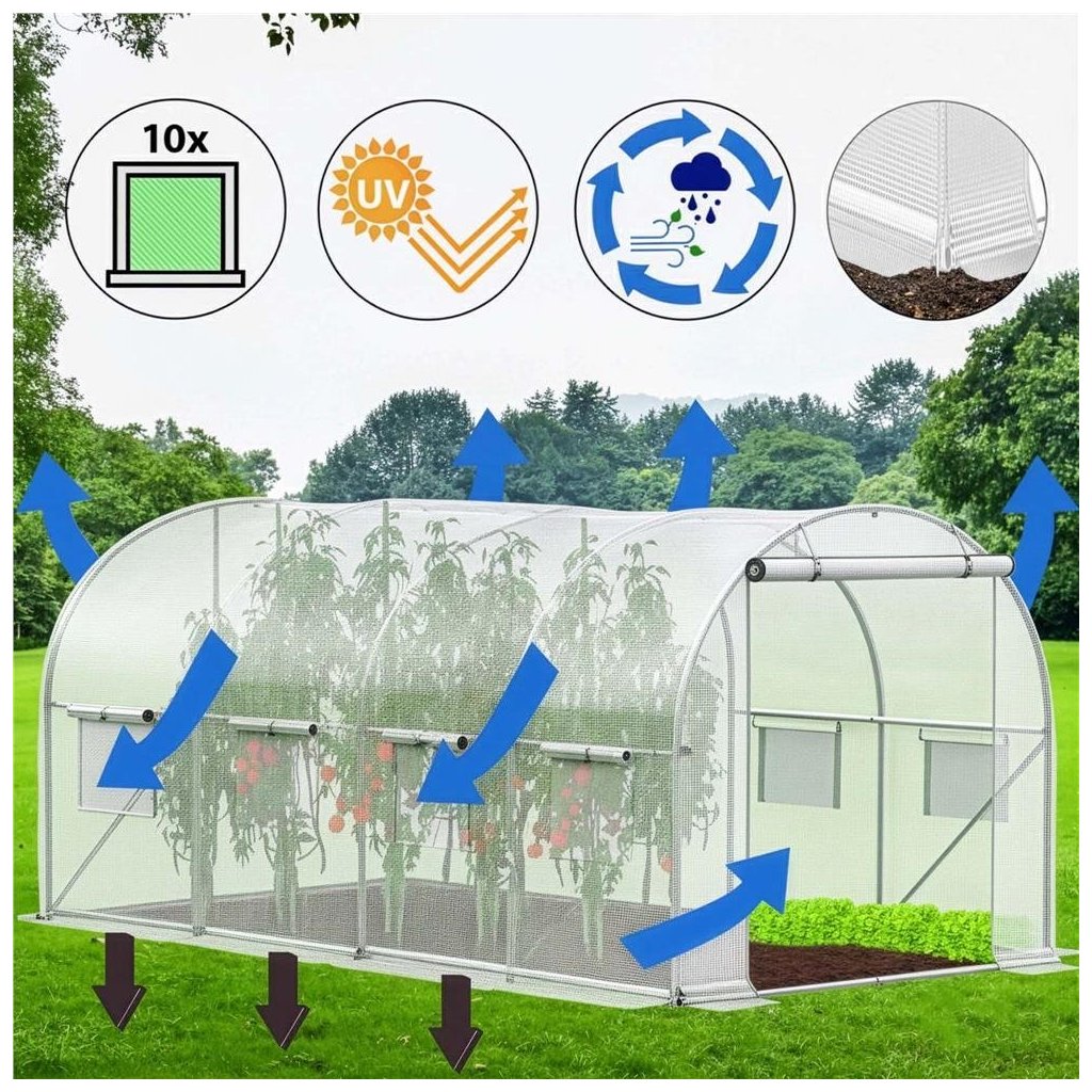 Záhradný fóliovník Springos® GT0009 je priestranný a stabilný polytunel určený pre pestovanie zeleniny, ovocia, byliniek aj okrasných rastlín. Poskytuje spoľahlivú ochranu pred nepriaznivými poveternostnými podmienkami a vytvára ideálnu mikroklímu pre rýchlejší rast a skorší zber úrody.